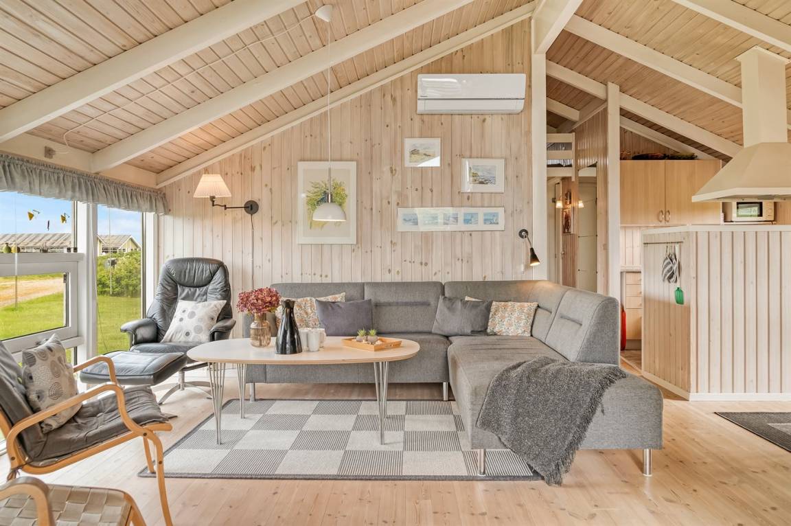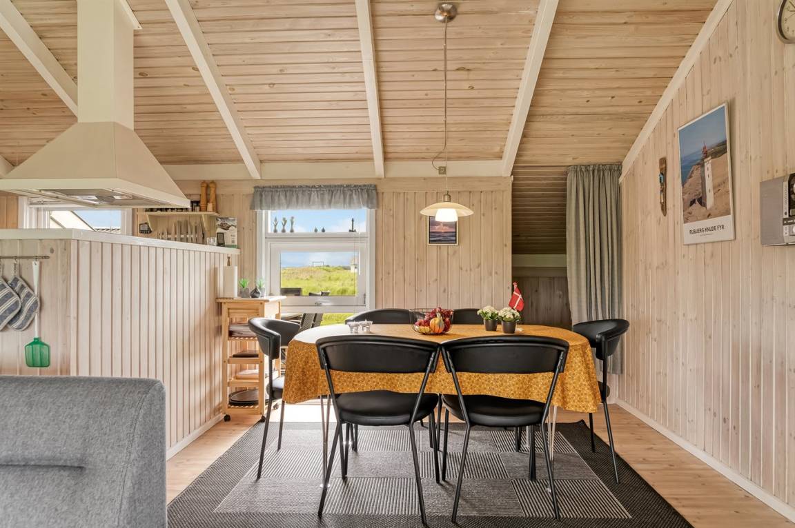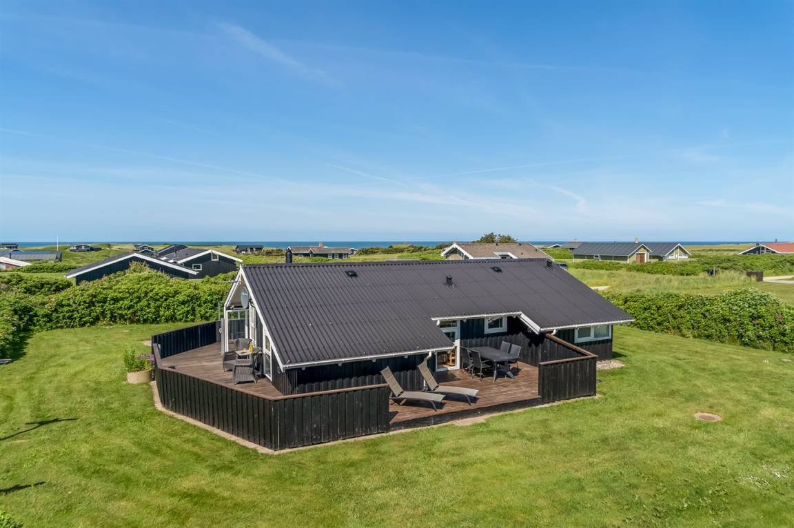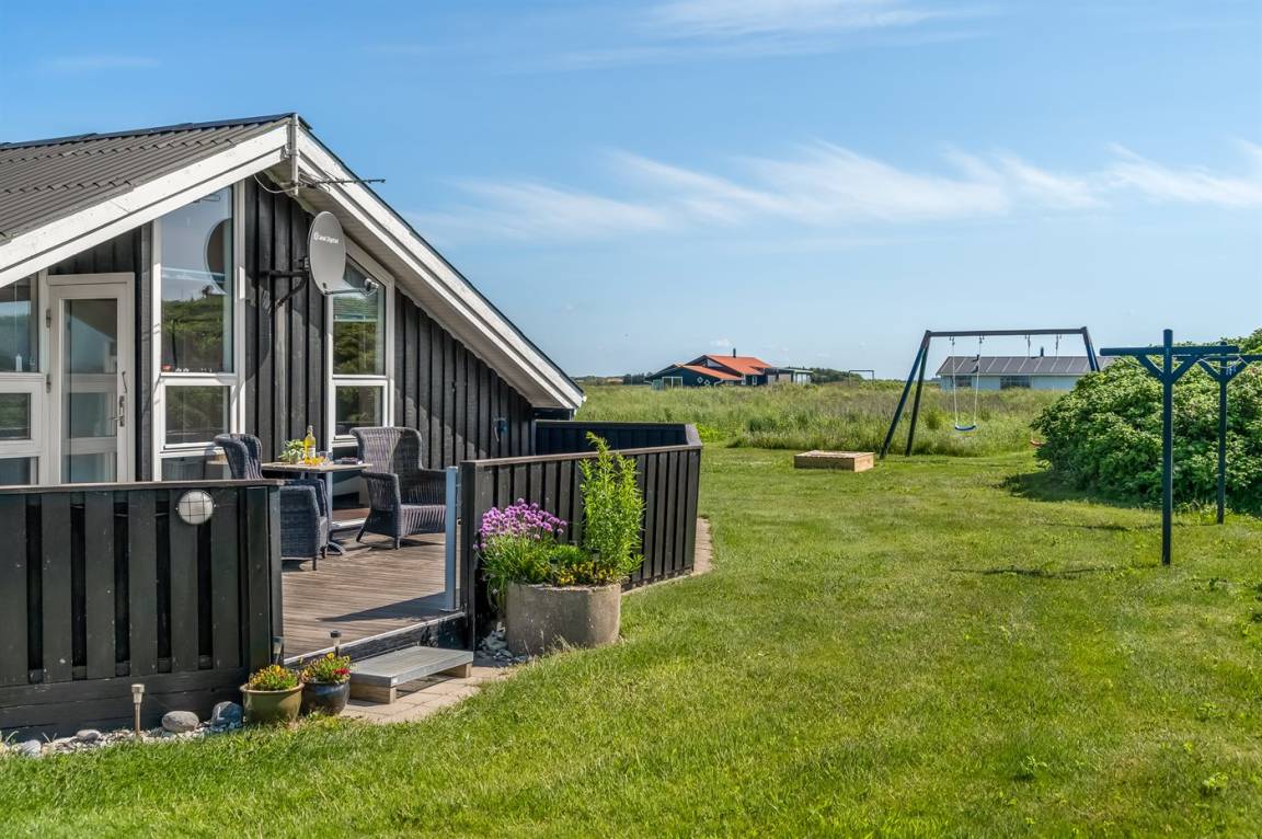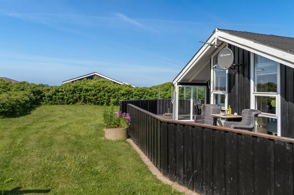 Dieses gemütliche und gut ausgestattete Ferienhaus, von dem aus das Meer zu ahnen ist, liegt auf einem teilweise eingezäunten Grundstück an der Steilküste.