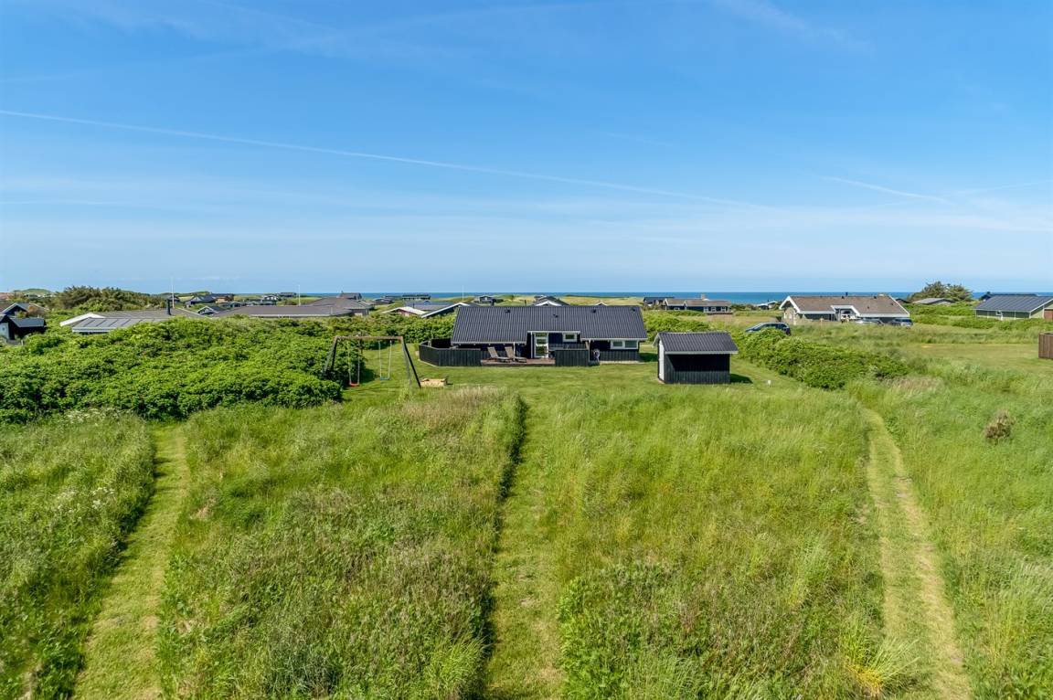 DraußenDie Ferienunterkunft liegt auf einem 2500 m² großen Naturgrundstück. Die Entfernung zum Meer beträgt 300 m. Die nächste Einkaufsmöglichkeit liegt 1000 m entfernt. Es steht ein 50 m² Terrassenareal zur Verfügung. Schaukel. Sandkasten. Parkplatz auf dem Grundstück.