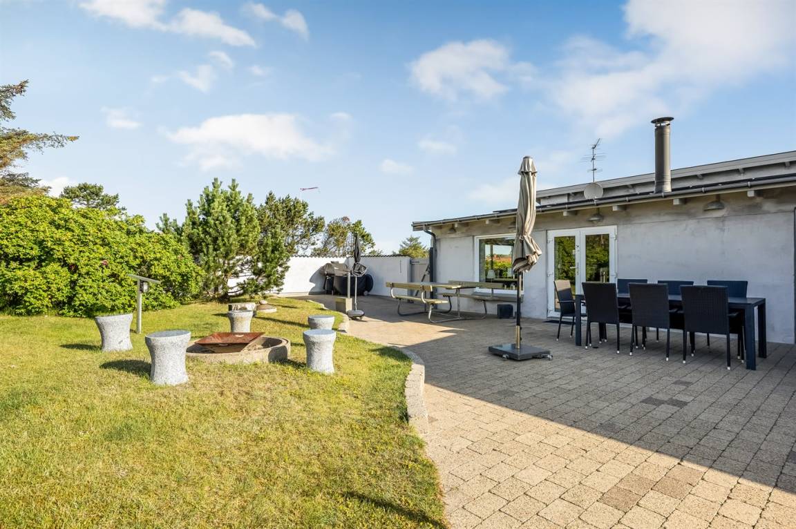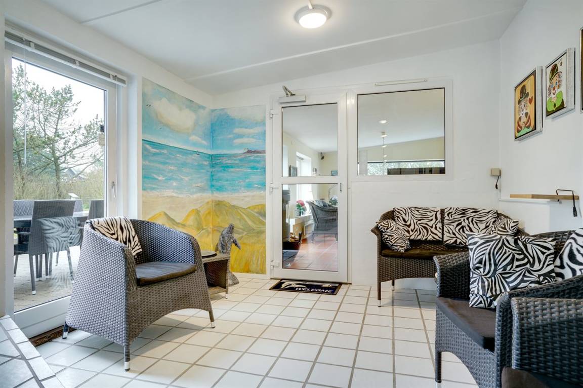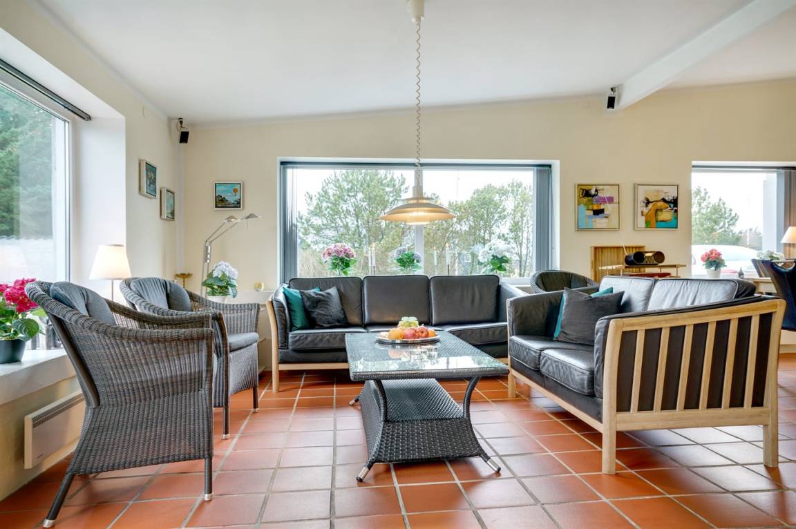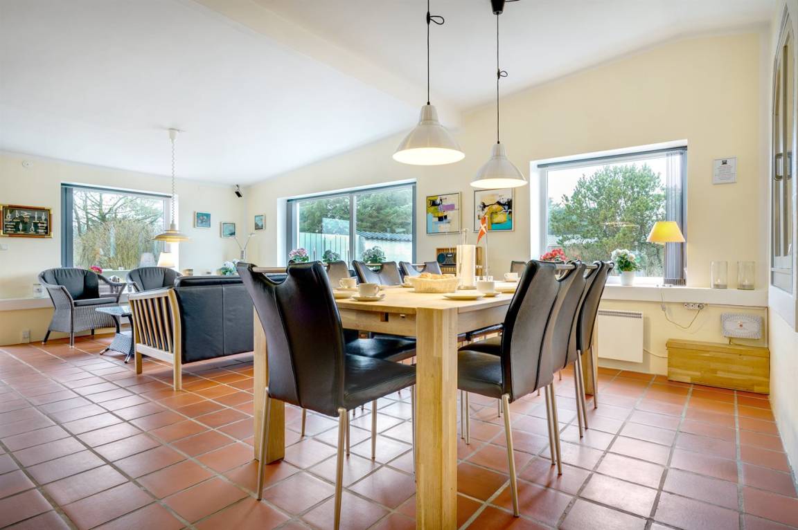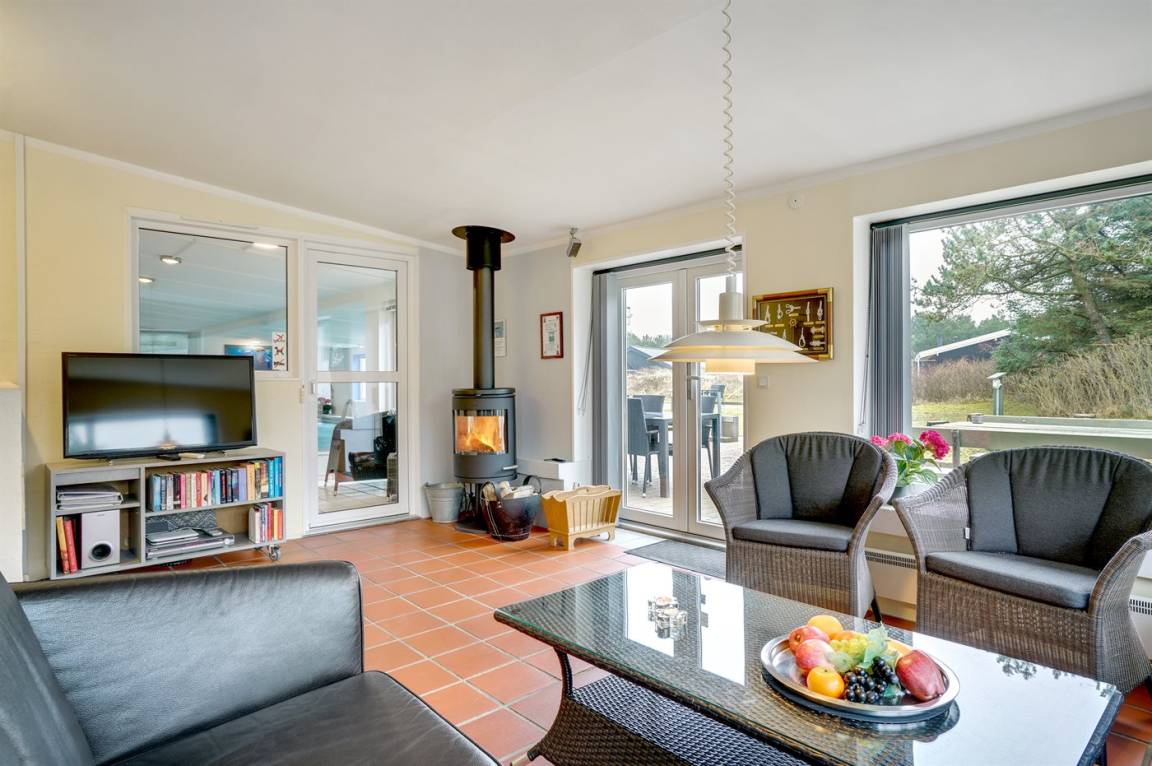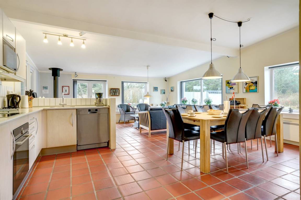 Gepflegtes Ferienhaus aus Stein mit Swimmingpool und Sauna, 1980 gebaut, 2005 renoviert und laufend verbessert und modernisiert, auf einem großen Naturgrundstück nur 700 m vom Meer entfernt gelegen. Petanquebahn (6 x 15 m) auf dem Grundstück. Zum Haus gehört offenes Terrassenareal mit diversen Gartenmöbeln. Innen gibt es beheizte Klinkerböden überall, jedoch Holzböden in den 4 Schlafzimmern. Ferner gibt es weiß verputzte Wände und Gipsdecken. Swimmingpool-Abteilung mit Swimmingpool (8,5 x 3,5 x 1,3 m), Minianlage mit CD-Spieler, MP3-Spieler, Fußbodenheizung sowie Zugang zum Badezimmer mit Dusche und beheiztem Klinkerboden. Sauna. Zusätzliches Badezimmer mit Dusche und Fußbodenheizung. Waschküche mit Waschmaschine, Wäschetrockner und Wickelplatz. In der Küche gibt es Tiefkühlgerät, Mikrowelle, Geschirrspüler und Herd mit Ceran-Feld. Das Wohnzimmer ist mit u. a. Kaminofen, TV mit digitalem Satellitenanschluss, DVD-Spieler, Surroundsound-Anlage sowie Stereoanlage mit CD-Spieler eingerichtet. 4 Schlafzimmer: 3 mit Doppelbett und 1 mit 2 Etagenbetten. 2 der Zimmer sind mit Flatscreen-TV ausgestattet - nur für mitgebrachte Spielkonsolen wie z. B. Playstation geeignet, da kein Anntennenanschluss vorhanden ist. An weiterer Ausstattung kann kostenlose, kabellose Internetverbindung erwähnt werden (200/200 Mbit - eigener Computer ist mitzubringen) und es ist eine energiegerechte Wasser-/Wärmepumpe installiert. Für die kleinen Feriengäste stehen 2 Kinderbetten, 2 Kinderhochstühle, Sandkasten und Schaukel zur Verfügung. Zusätzlicher Kühl-/Gefrierschrank im Geräteraum. Es ist ein Ladestecker für Elektroautos installiert (Typ 2). Ein gutes Ferienhaus zu jeder Jahreszeit für sowohl 1 als 2 Familien.