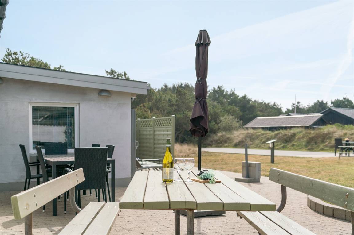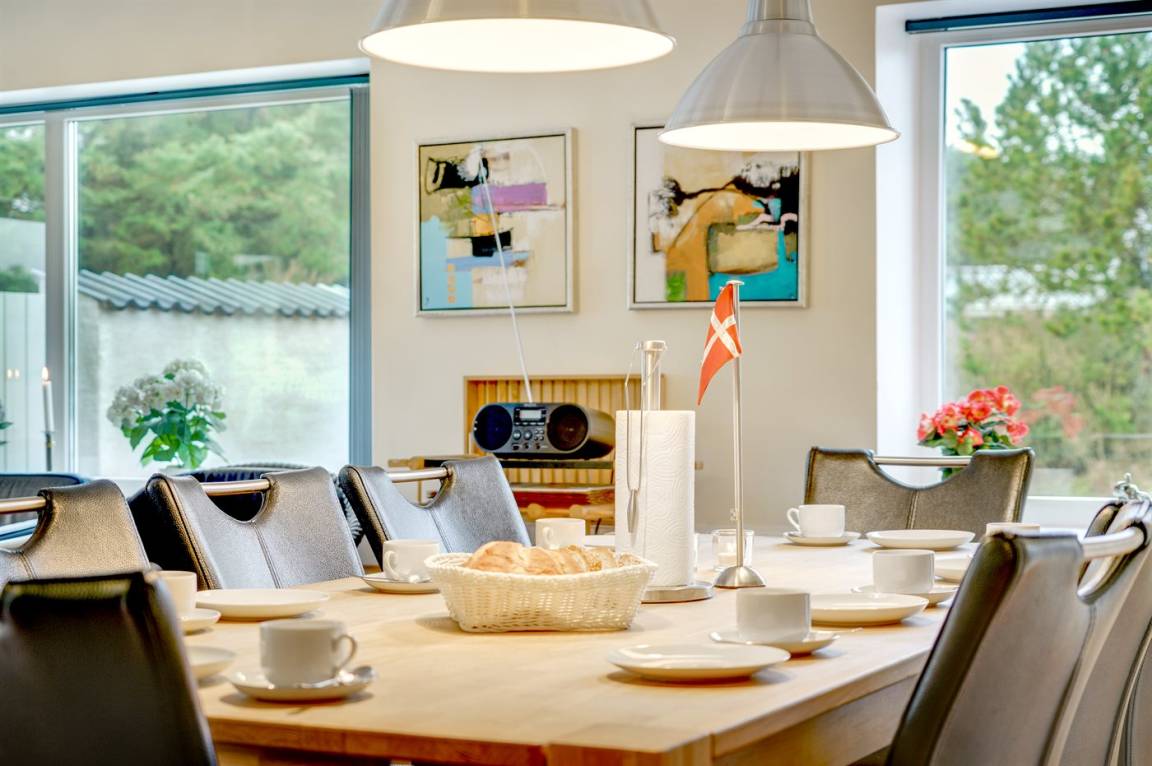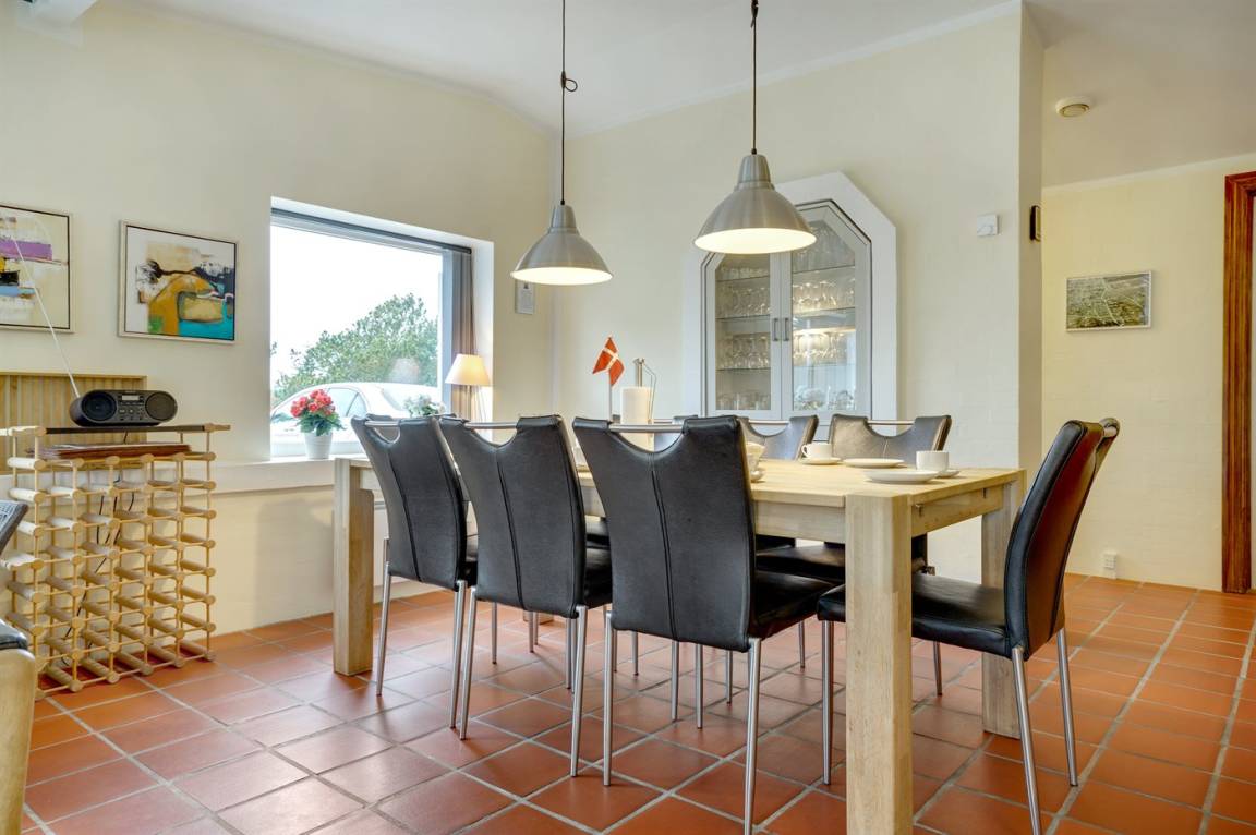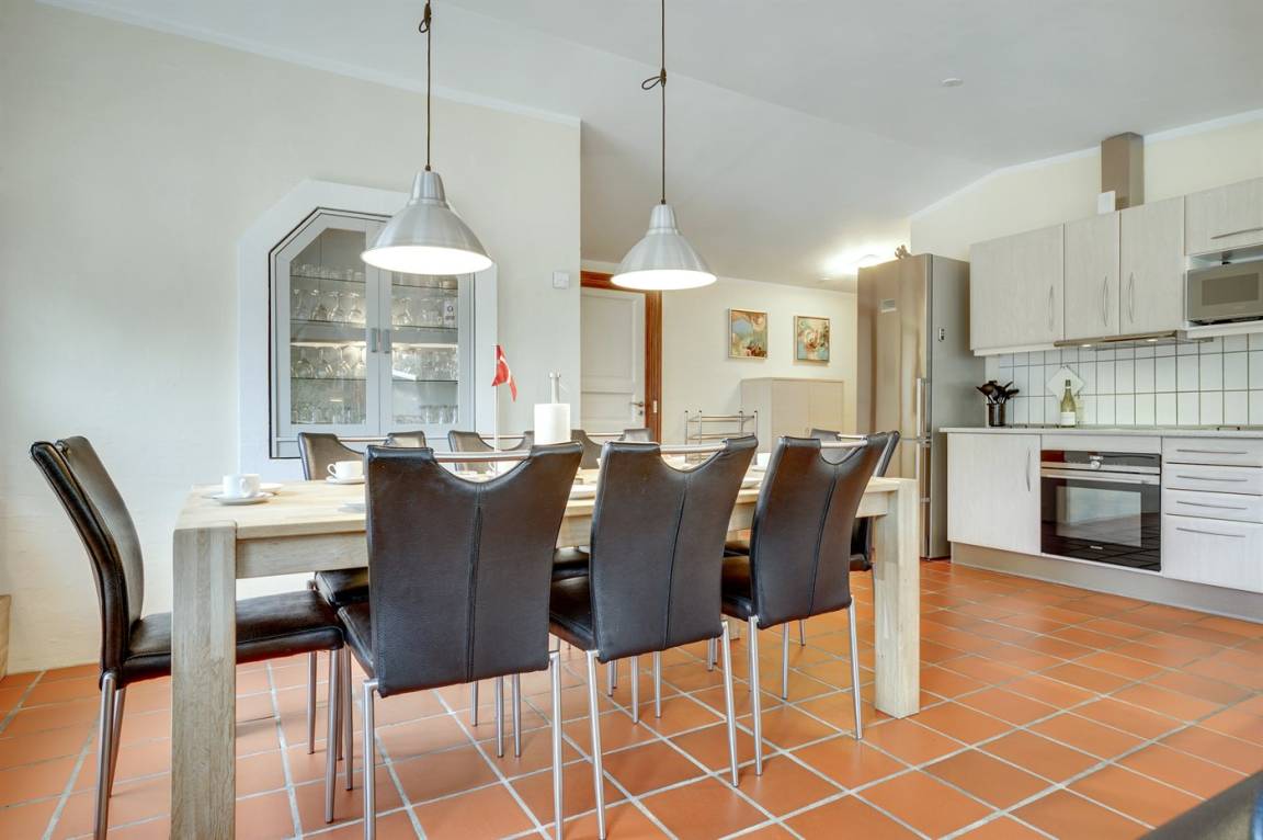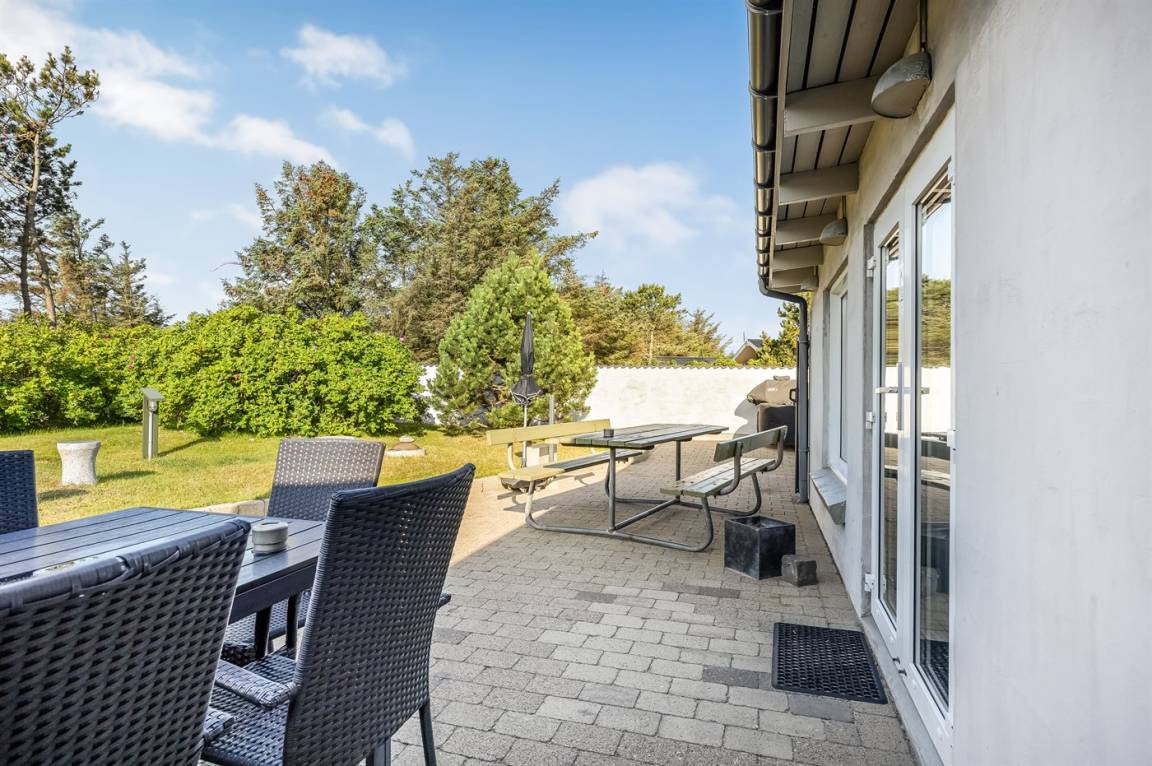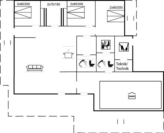 Gepflegtes Ferienhaus aus Stein mit Swimmingpool und Sauna, 1980 gebaut, 2005 renoviert und laufend verbessert und modernisiert, auf einem großen Naturgrundstück nur 700 m vom Meer entfernt gelegen. Petanquebahn (6 x 15 m) auf dem Grundstück. Zum Haus gehört offenes Terrassenareal mit diversen Gartenmöbeln. Innen gibt es beheizte Klinkerböden überall, jedoch Holzböden in den 4 Schlafzimmern. Ferner gibt es weiß verputzte Wände und Gipsdecken. Swimmingpool-Abteilung mit Swimmingpool (8,5 x 3,5 x 1,3 m), Minianlage mit CD-Spieler, MP3-Spieler, Fußbodenheizung sowie Zugang zum Badezimmer mit Dusche und beheiztem Klinkerboden. Sauna. Zusätzliches Badezimmer mit Dusche und Fußbodenheizung. Waschküche mit Waschmaschine, Wäschetrockner und Wickelplatz. In der Küche gibt es Tiefkühlgerät, Mikrowelle, Geschirrspüler und Herd mit Ceran-Feld. Das Wohnzimmer ist mit u. a. Kaminofen, TV mit digitalem Satellitenanschluss, DVD-Spieler, Surroundsound-Anlage sowie Stereoanlage mit CD-Spieler eingerichtet. 4 Schlafzimmer: 3 mit Doppelbett und 1 mit 2 Etagenbetten. 2 der Zimmer sind mit Flatscreen-TV ausgestattet - nur für mitgebrachte Spielkonsolen wie z. B. Playstation geeignet, da kein Anntennenanschluss vorhanden ist. An weiterer Ausstattung kann kostenlose, kabellose Internetverbindung erwähnt werden (200/200 Mbit - eigener Computer ist mitzubringen) und es ist eine energiegerechte Wasser-/Wärmepumpe installiert. Für die kleinen Feriengäste stehen 2 Kinderbetten, 2 Kinderhochstühle, Sandkasten und Schaukel zur Verfügung. Zusätzlicher Kühl-/Gefrierschrank im Geräteraum. Es ist ein Ladestecker für Elektroautos installiert (Typ 2). Ein gutes Ferienhaus zu jeder Jahreszeit für sowohl 1 als 2 Familien.