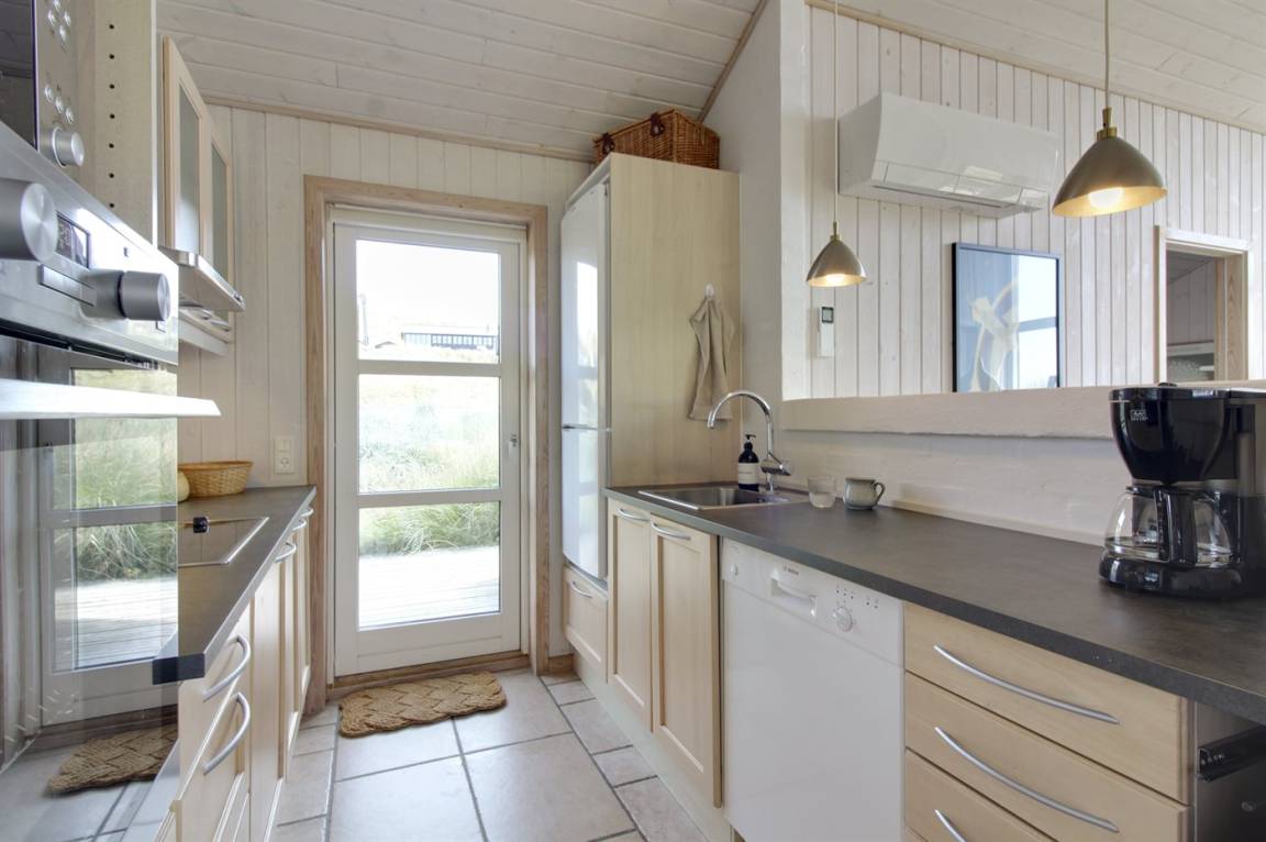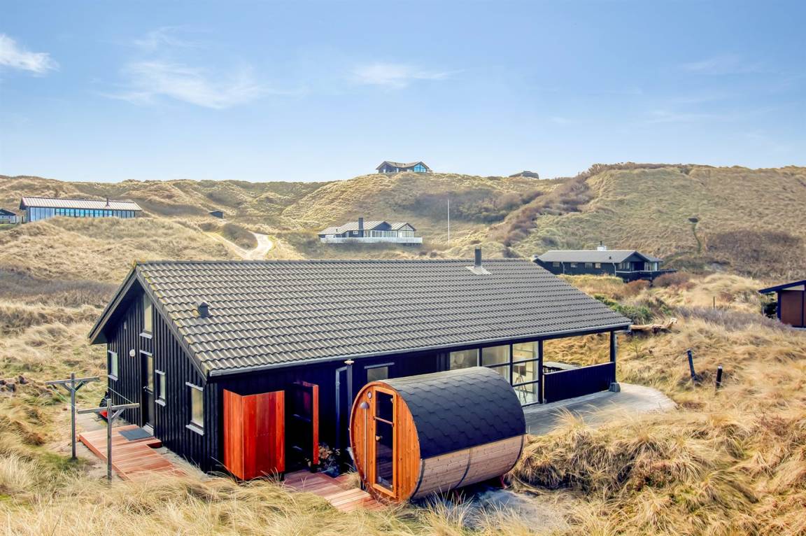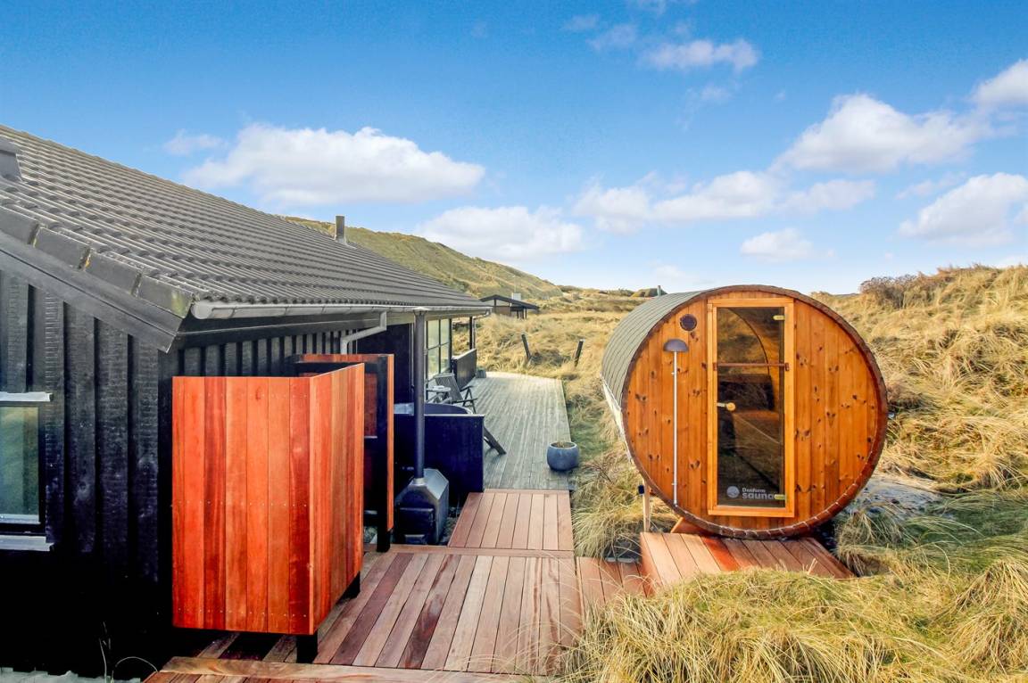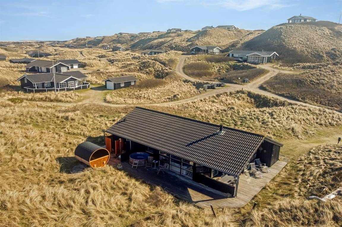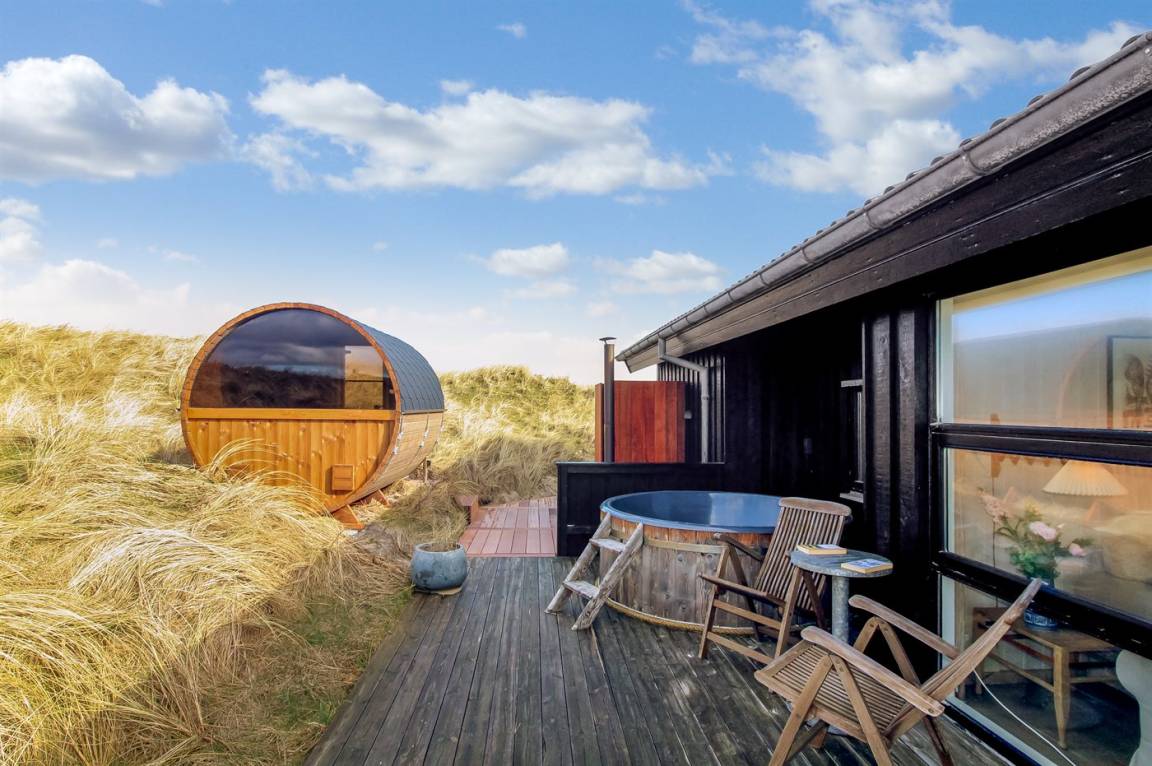 DraußenDie Ferienunterkunft liegt auf einem 8906 m² großen Dünengrundstück.Naturgrundstück. Die Entfernung zum Meer beträgt 150 m. Die nächste Einkaufsmöglichkeit liegt 2500 m entfernt. Es steht ein 45 m² Terrassenareal zur Verfügung. Außerdem gibt es 12 m² überdachte Terrasse. Geräteraum. Außensauna. Es ist ein Ladestecker für Elektroautos installiert. Parkplatz auf dem Grundstück.