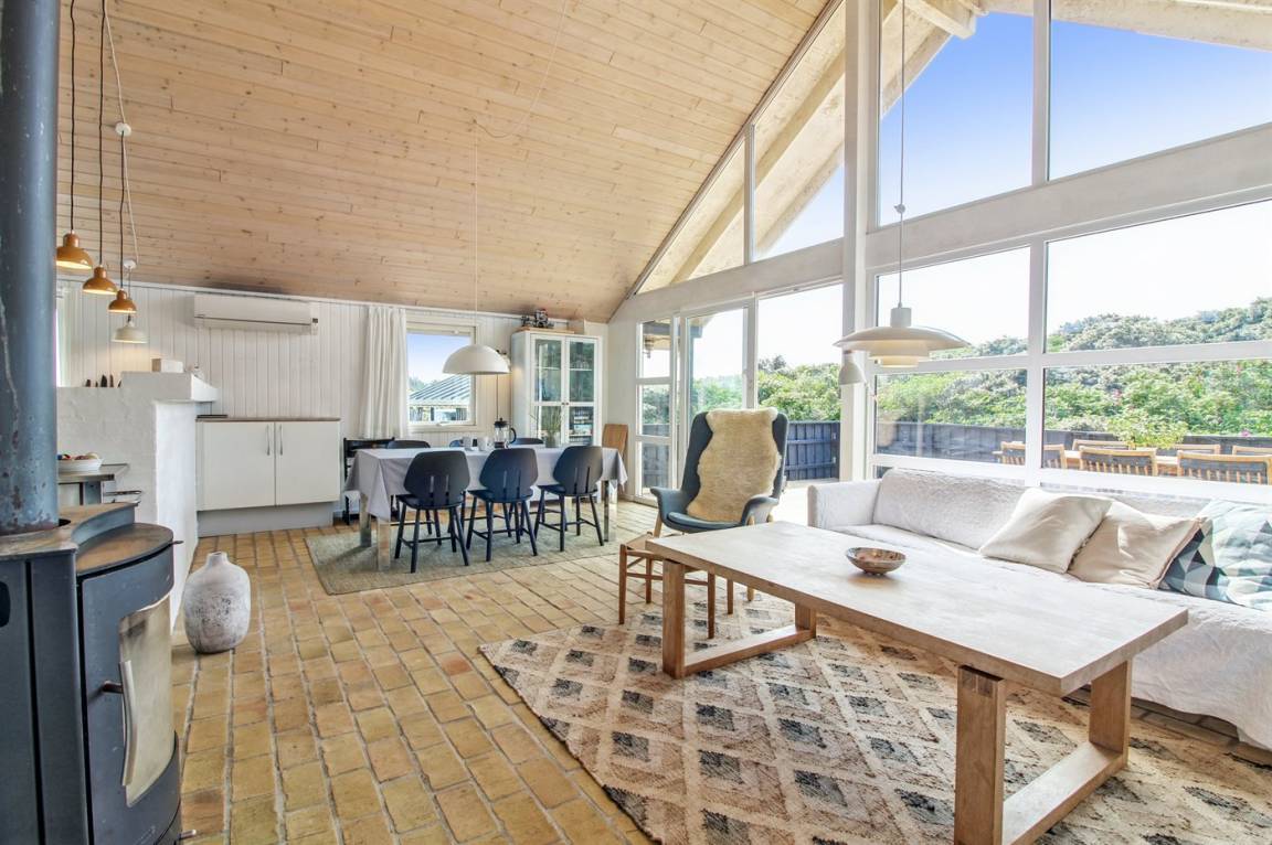 „The vacation at the holiday home: Vi var tilfreds med opholdet. Men da vi gerne vil være ude var det ikke komfortable havestole. En paradoks på begge terrasser ville have været dejligt. Parasollen kunne man bare flytte. På billedet kunne vi se en grill, men der var ingen. Men skønt med de store lukkede terrasser. Vi havde en skøn uge. Der manglede intet i køkkenet, men køkkenskab og værelser virkede fugtige. Desuden trængte huset til lidt udvendig vedligehold. Men det har jo ingen betydning for opholdet. Beliggenheden var perfekt og vi kunne godt komme igen.“