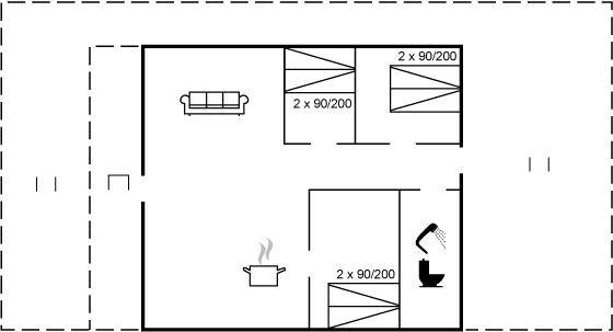 SchlafverhältnisseDie Schlafplätze verteilen sich auf 3 Schlafräume. 6 Schlafplätze in Doppelbetten.