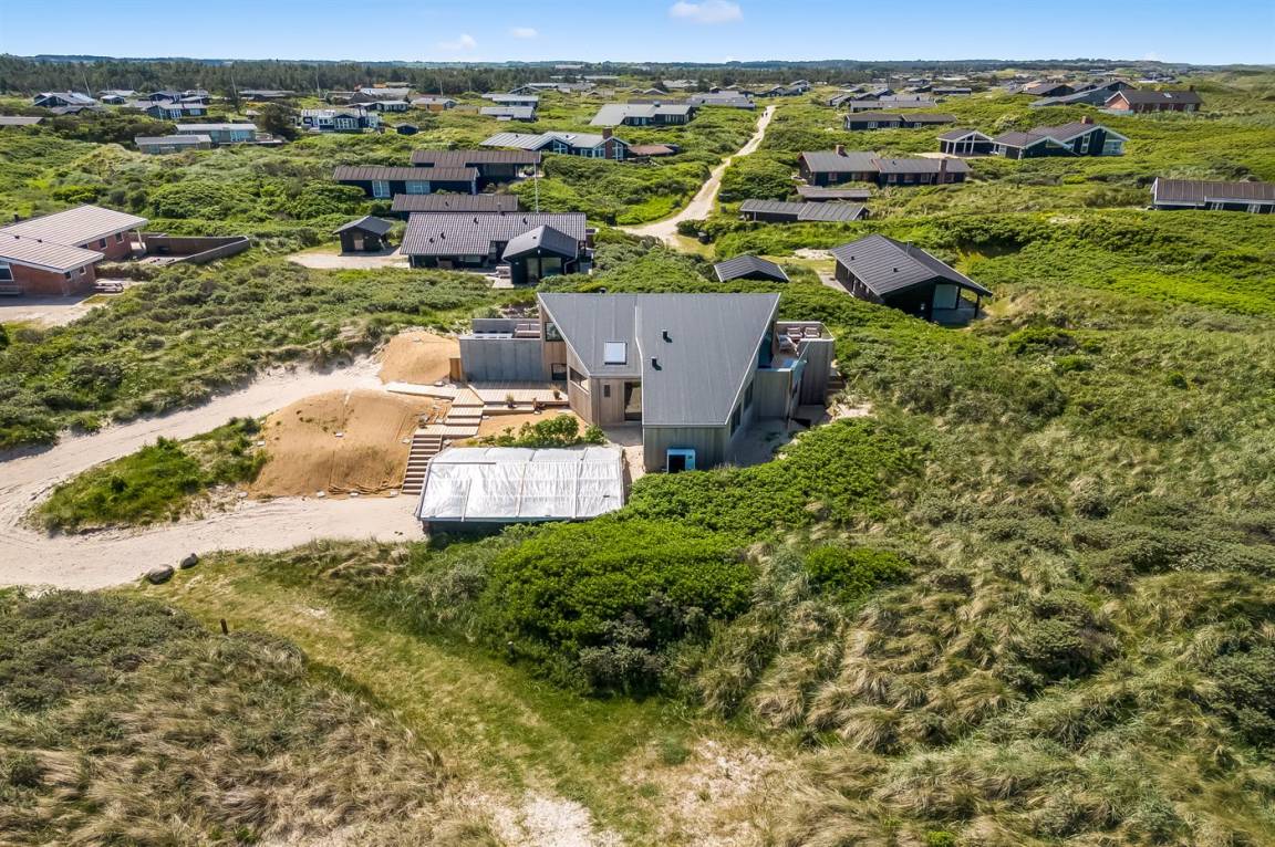 Das Ferienhaus liegt auf einem 2.586 m² großen Dünengrundstück. Das Meer ist nur 50 m entfernt. Die nächste Einkaufsmöglichkeit befindet sich in 400 m Entfernung. Zum Haus gehören offene Terrassenbereiche sowie eine überdachte Terrasse. Ein Grill steht zur Verfügung. Zudem gibt es eine Garage und Parkmöglichkeiten direkt am Haus.