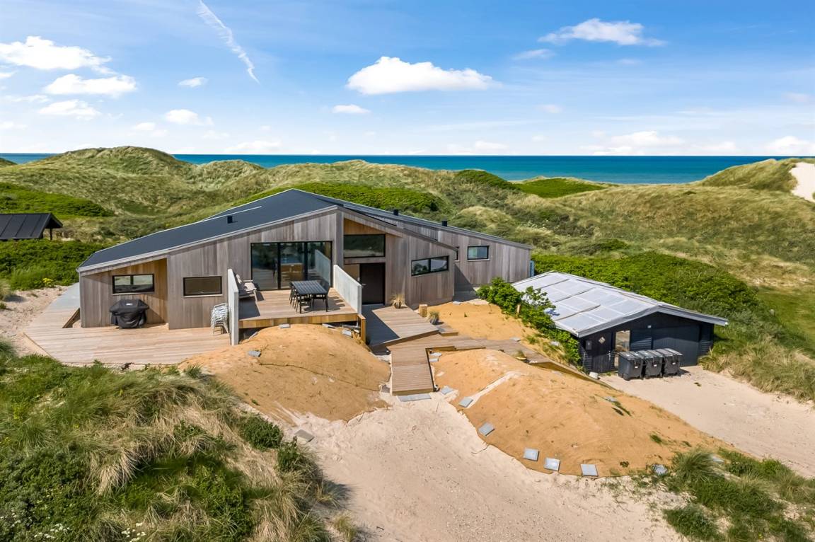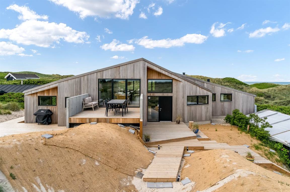 Das Haus liegt einzigartig am Ende einer Sackgasse mit den Dünen und dem Meer im Westen und dem unter Naturschutz stehenden Gebiet Munkens Klit im Norden. Vom erhöhten Küchen- und Wohnbereich hast du einen fantastischen Blick auf das Meer und die Dünen, mit direktem Zugang zu den Terrassen, auf denen du die Morgen- und Abendsonne mit Meerblick genießen kannst. Lausche dem Rauschen der Nordsee von den fünf Doppelzimmern aus, die mit großen Fenstern zu den Dünen im Westen hin ausgerichtet sind.