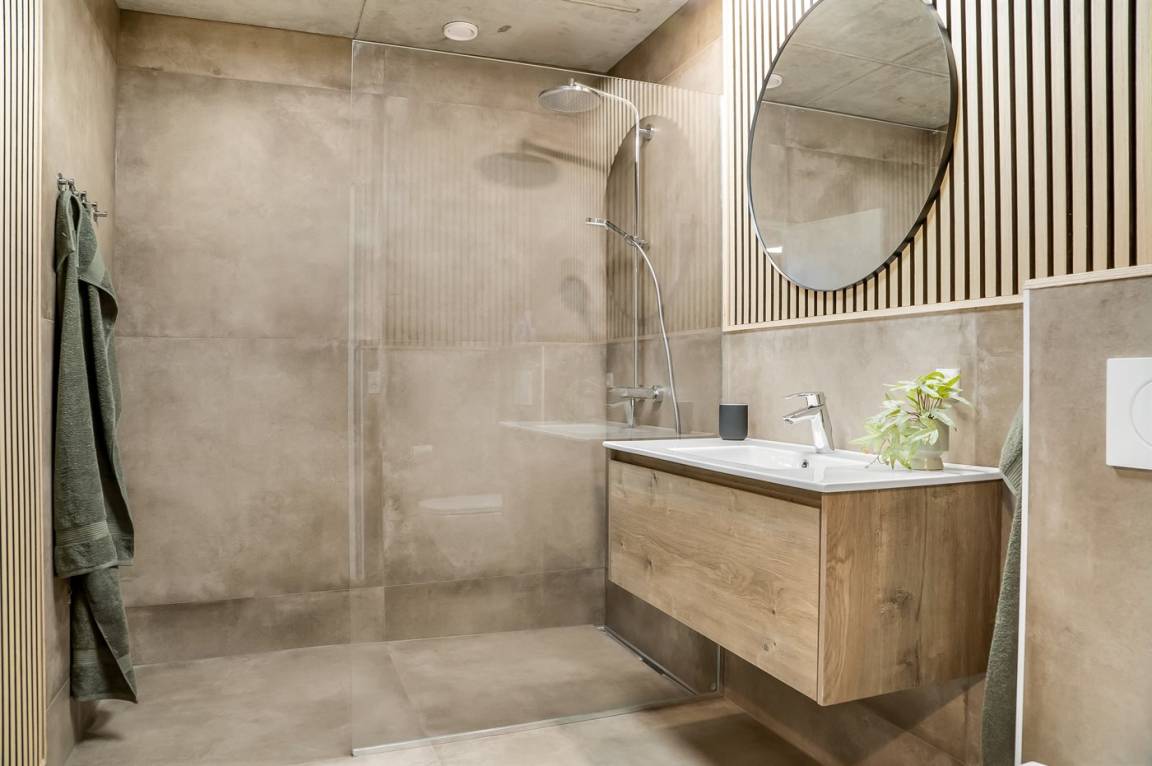 Das Haus verfügt über 3 Badezimmer mit Duschnische und Toilette, alle mit Fußbodenheizung.
