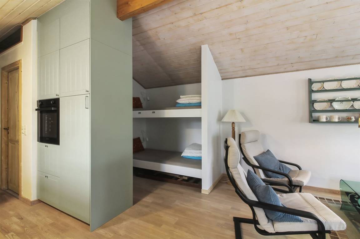 SchlafverhältnisseEs gibt einen Schlafraum. 2 Schlafplätze in einem Doppelbett. 2 Schlafplätze in einem Etagenbett. Ferner steht ein Kinderbett zur Verfügung.