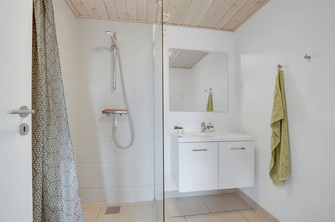 Dieses schönes Ferienhaus liegt am Ortsrand von Nr. Lyngby auf einem großen Grundstück in einer Stichstrasse. Vom offenen Obergeschoss des Hauses ist das Meer zu ahnen. Eine gute und befestigte Treppe führt in das offene Obergeschoss hinauf. Fußbodenheizung im ganzen Erdgeschoss.