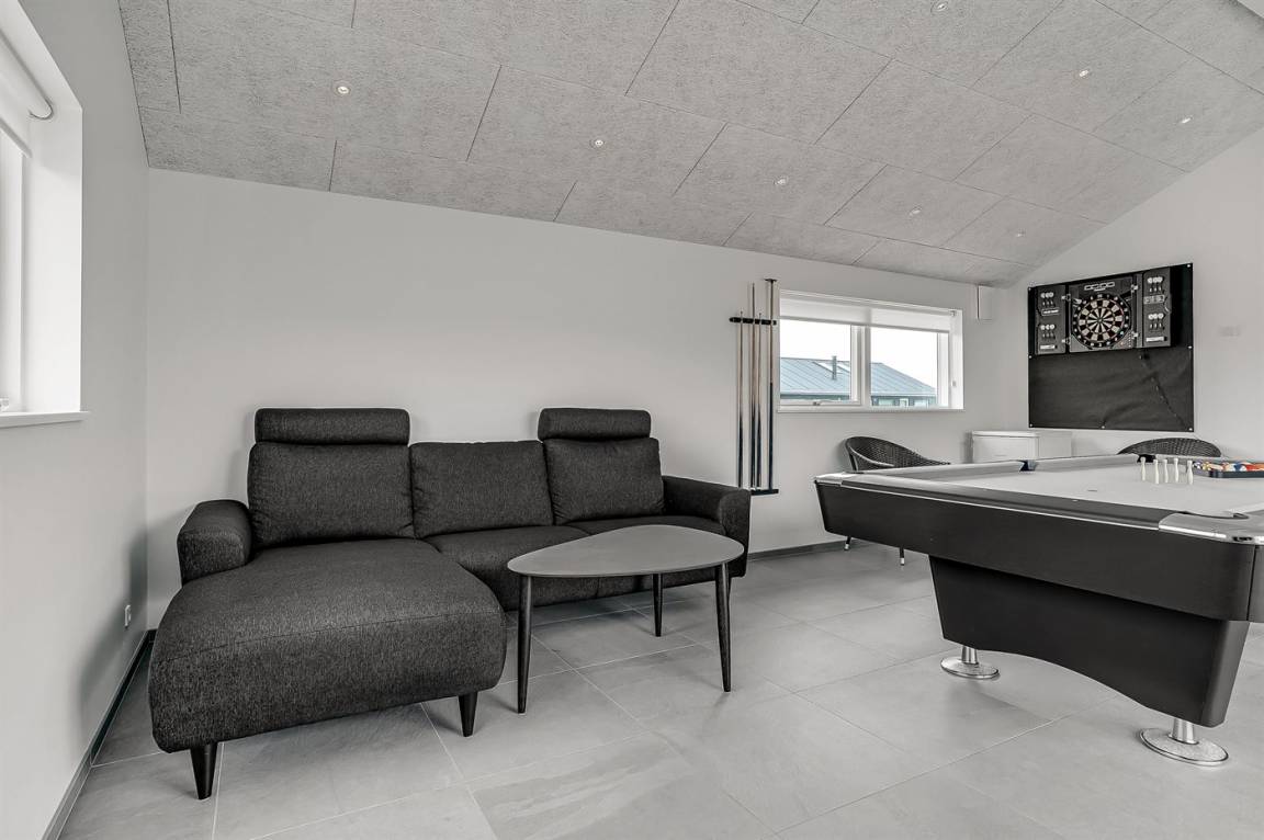 In dem naturschönen Gebiet gibt es 3 Seen und das Haus liegt nicht weit von der Nordsee und dem schönen Badestrand entfernt. Die Einrichtung ist hell und einladend mit großen Fensterfronten, die für einen guten Lichteinfall sorgen. Es gibt gute Aktivitätsmöglichkeiten für die ganze Familie – sowohl auf dem schönen Grundstück als auch in dem geräumigen Hobbyraum, der sich im Gästehaus befindet.
