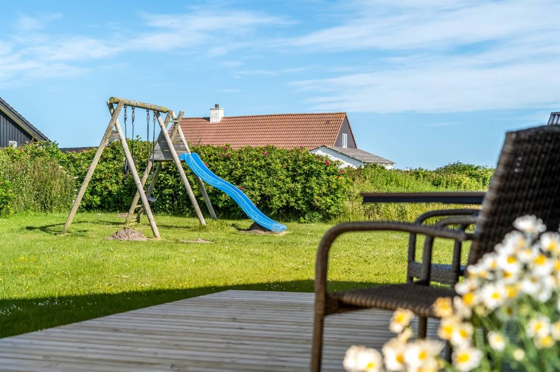 DraußenDie Ferienunterkunft liegt auf einem 1266 m² großen Gartengrundstück. Die Entfernung zum Meer beträgt 130 m. Die nächste Einkaufsmöglichkeit liegt 4000 m entfernt. Es steht ein offenes Terrassenareal zur Verfügung. Außerdem gibt es überdachte Terrasse. Schaukel. Rutsche. Außendusche. Es steht ein Grill zur Verfügung. Es ist ein Ladestecker für Elektroautos installiert. Ladestecker Typ 2. Mit einer Ladeleistung von 6 kW. Parkplatz auf dem Grundstück.