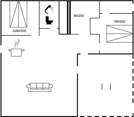 SchlafverhältnisseDie Schlafplätze verteilen sich auf 3 Schlafräume. 2 Schlafplätze in einem Doppelbett. 2 Schlafplätze in Einzelbetten. 2 Schlafplätze in einem Etagenbett.