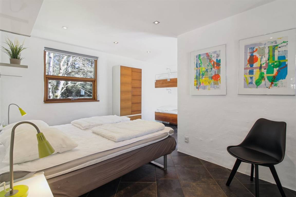 SchlafverhältnisseDie Schlafplätze verteilen sich auf 4 Schlafräume. 8 Schlafplätze in Doppelbetten. 2 Schlafplätze in Einzelbetten. 2 Schlafplätze in einem Etagenbett. 2 von diesen Schlafplätzen befinden sich im Gästehaus und 2 im offenen Obergeschoss.