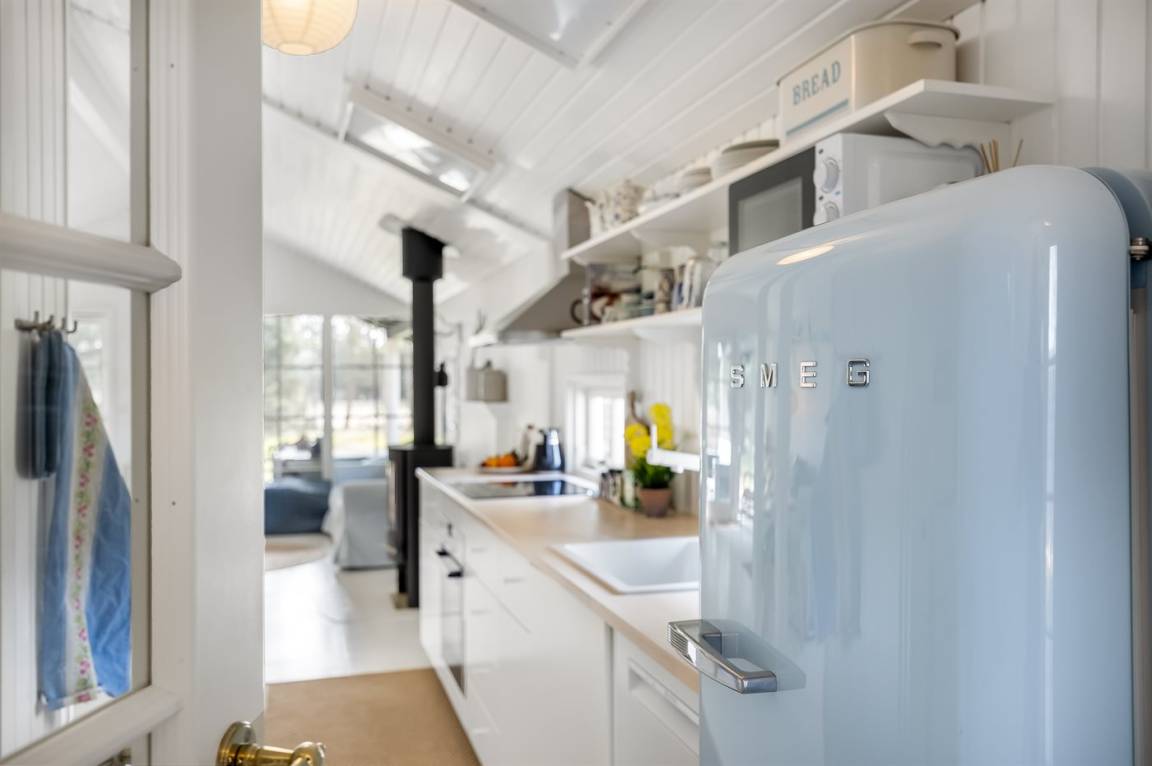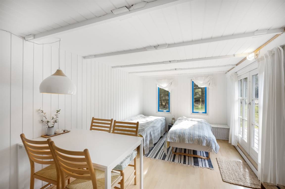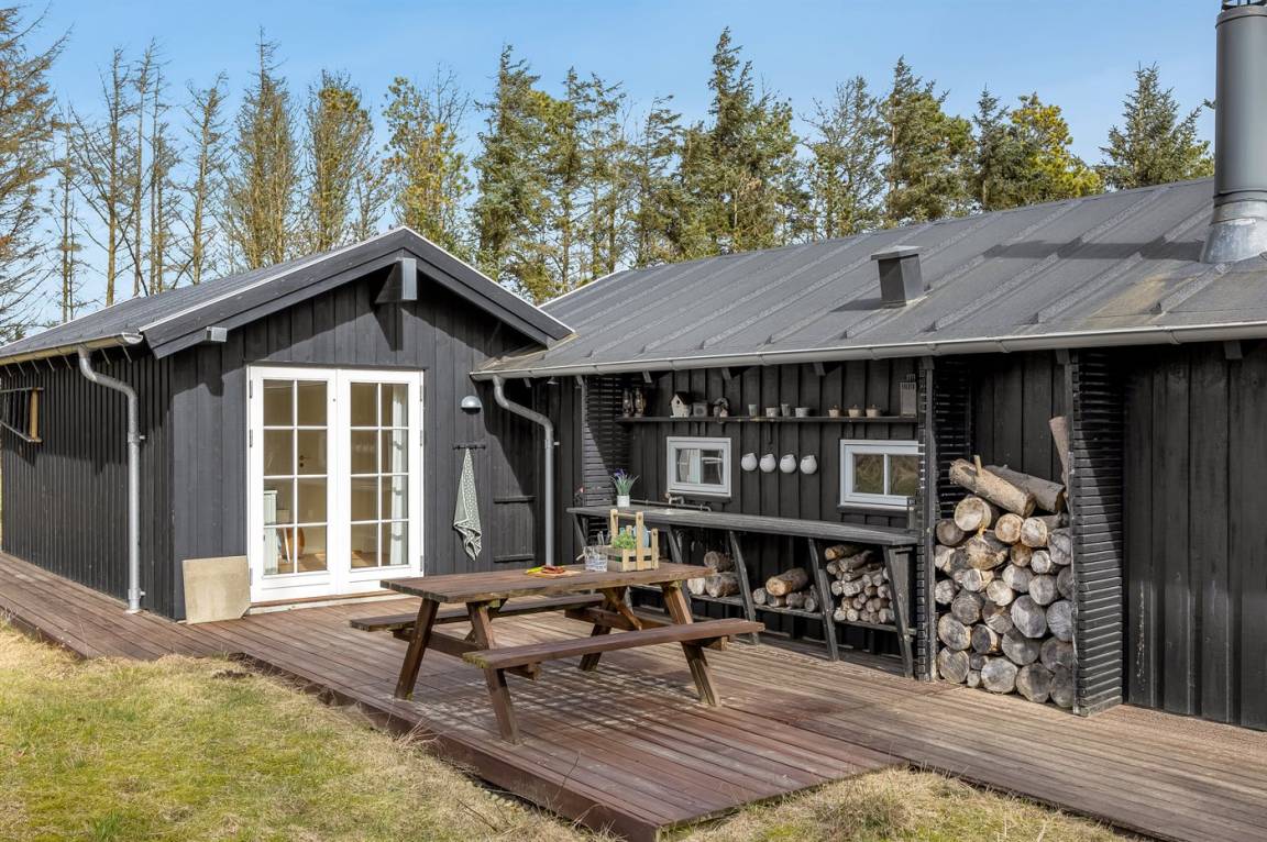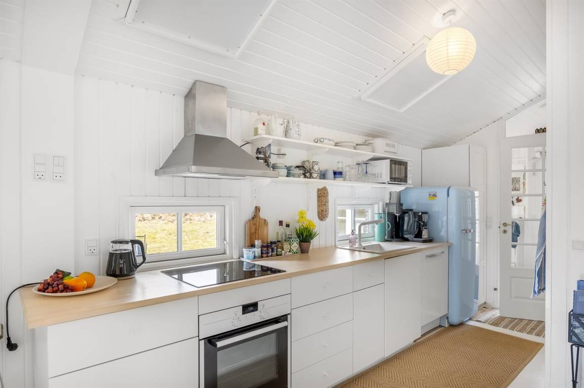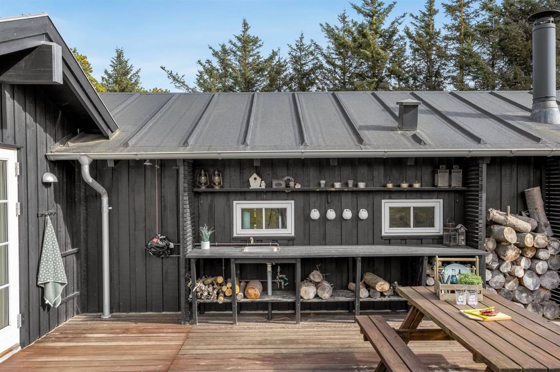 Das Haus ist für das Leben im Freien und Entspannung in schöner Umgebung geschaffen. Eine große Holzterrasse umgibt das gesamte Haus, sodass du die Sonne von morgens bis abends genießen kannst, und die französischen Türen von allen Zimmern schaffen eine einzigartige Verbindung zwischen drinnen und draußen. Hier hast du die Möglichkeit, draußen zu leben – sei es beim Morgenkaffee in der Sonne, bei langen Sommerabenden oder beim Kochen in der gut ausgestatteten Außenküche. Außerdem gibt es einen Grill, eine Lagerfeuerstelle und eine Außendusche, die das Urlaubserlebnis abrunden.