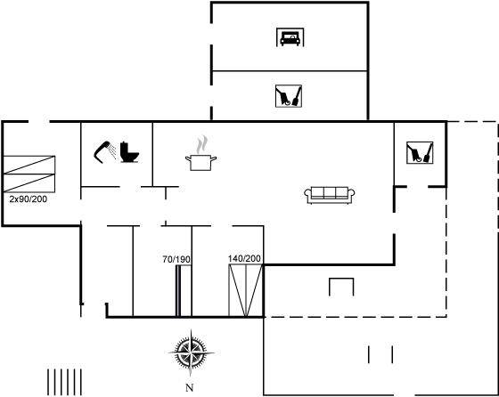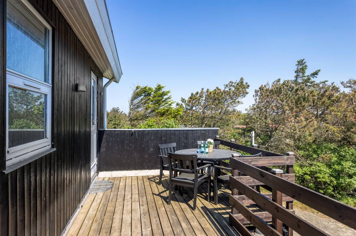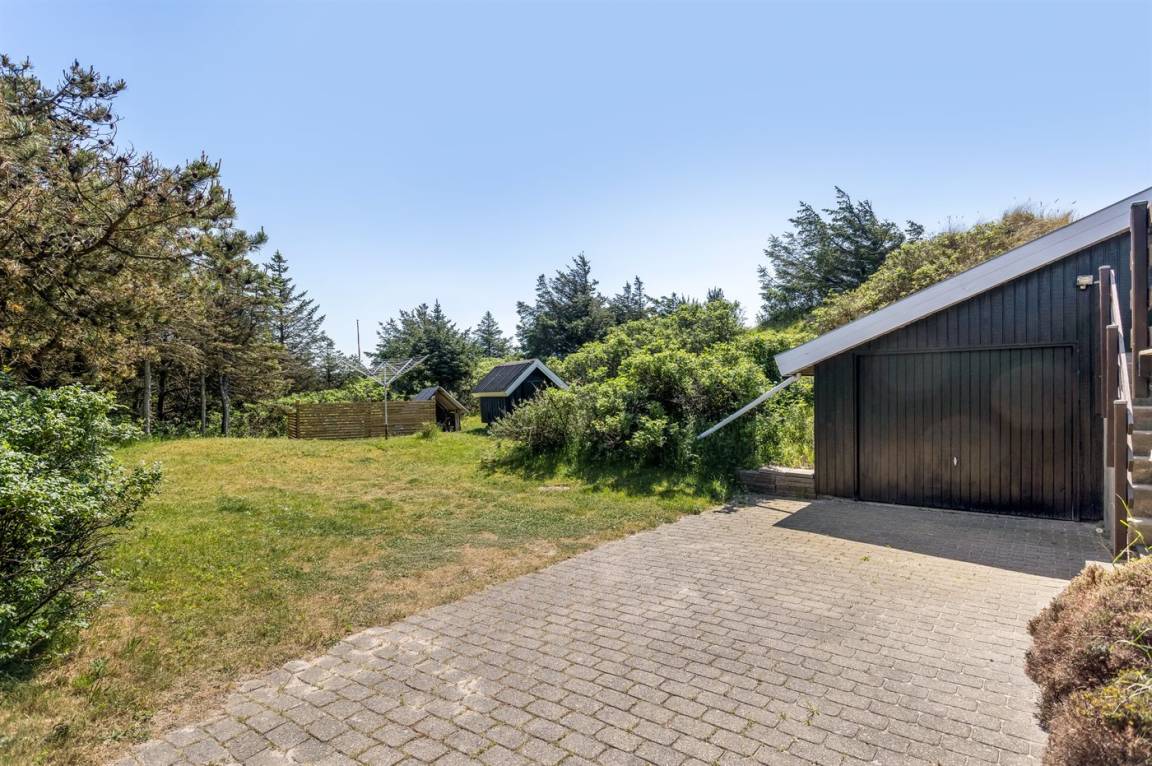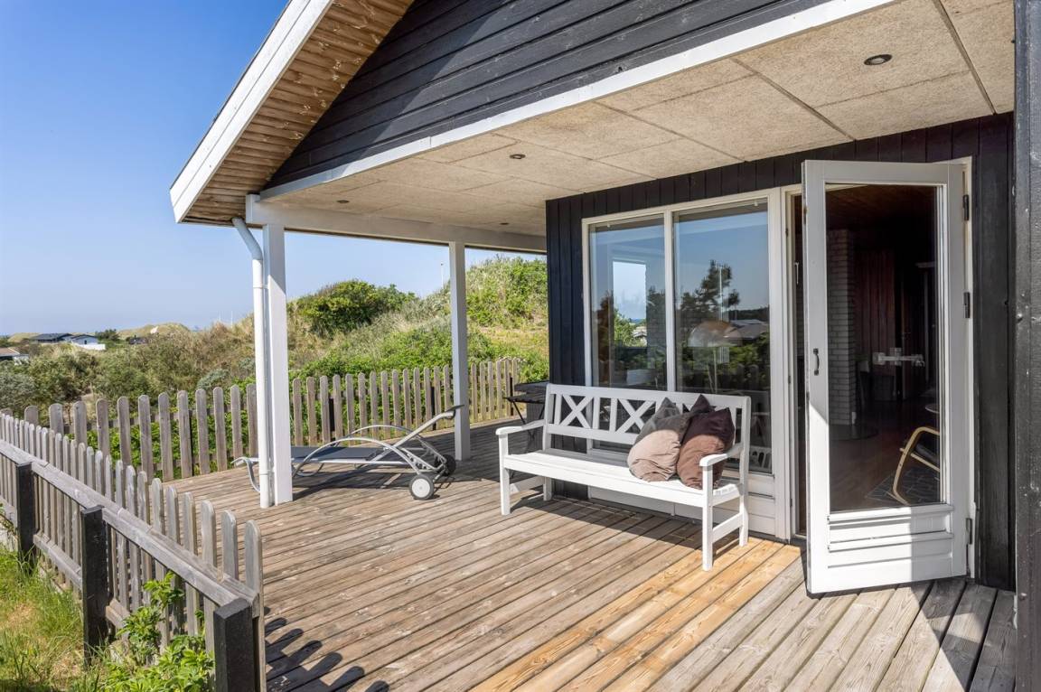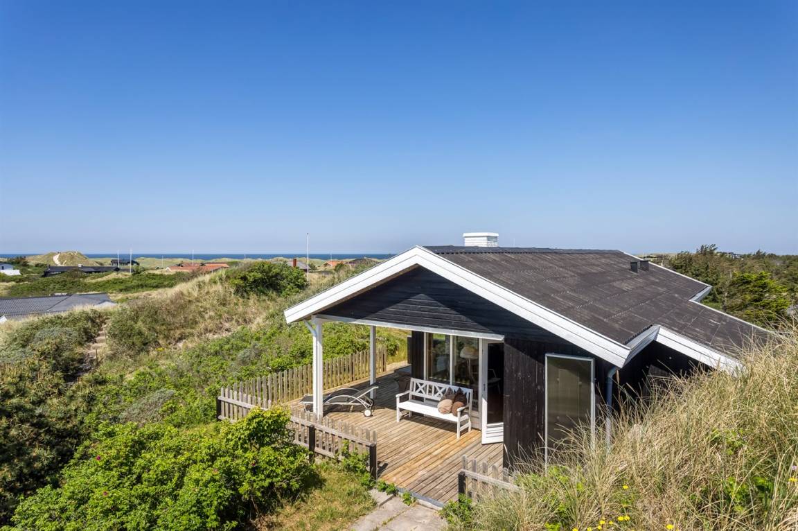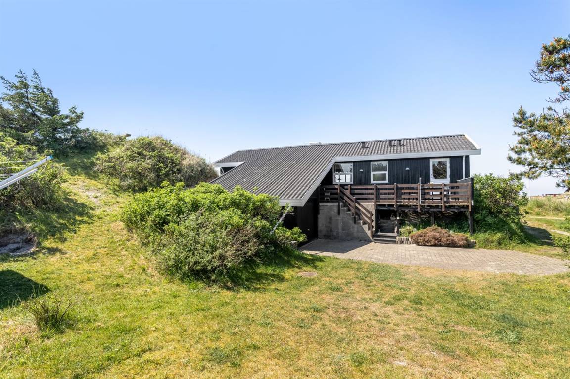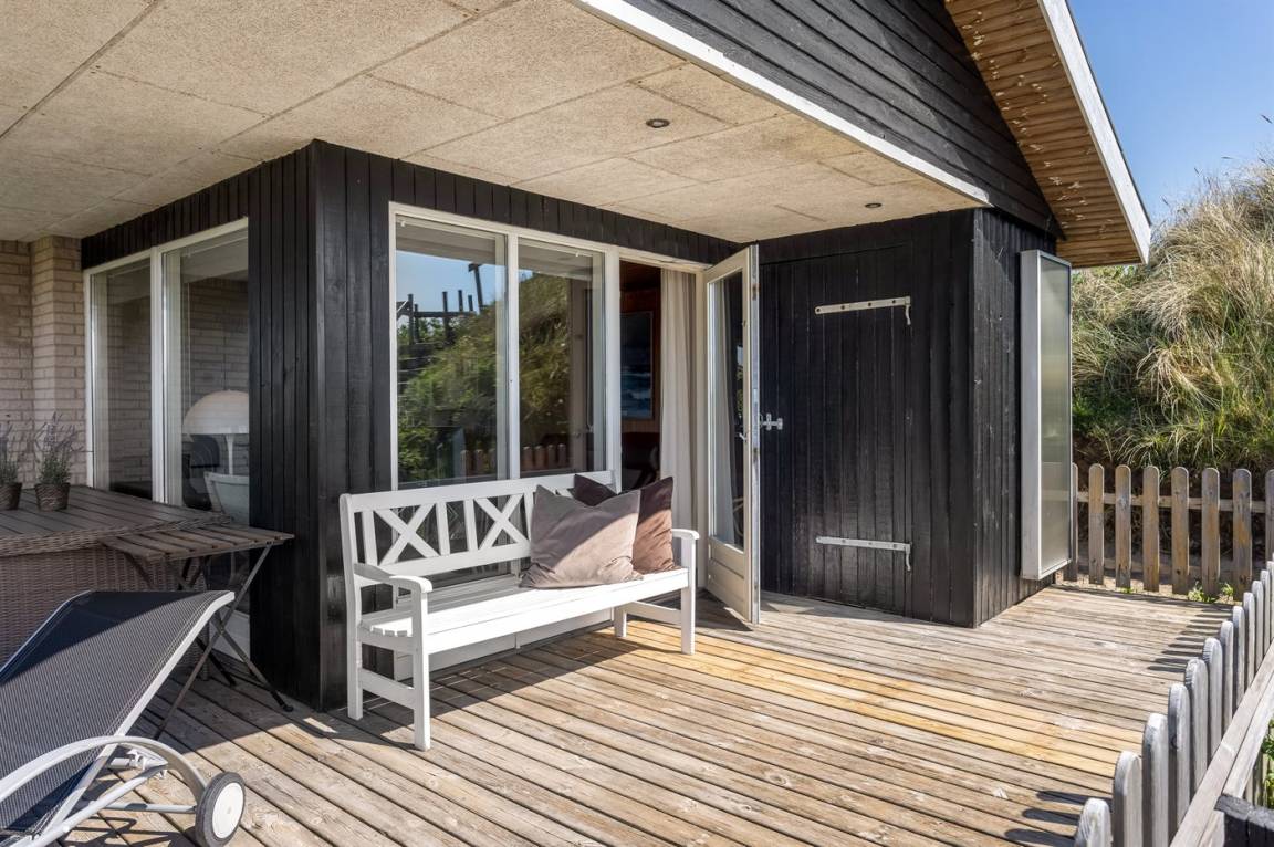 DraußenDie Ferienunterkunft liegt auf einem 1725 m² großen Dünengrundstück. Die Entfernung zum Meer beträgt 500 m. Die nächste Einkaufsmöglichkeit liegt 500 m entfernt. Es steht ein offenes Terrassenareal zur Verfügung. Außerdem gibt es überdachte Terrasse. Geräteraum. Es steht ein Grill zur Verfügung. Parkplatz auf dem Grundstück.
