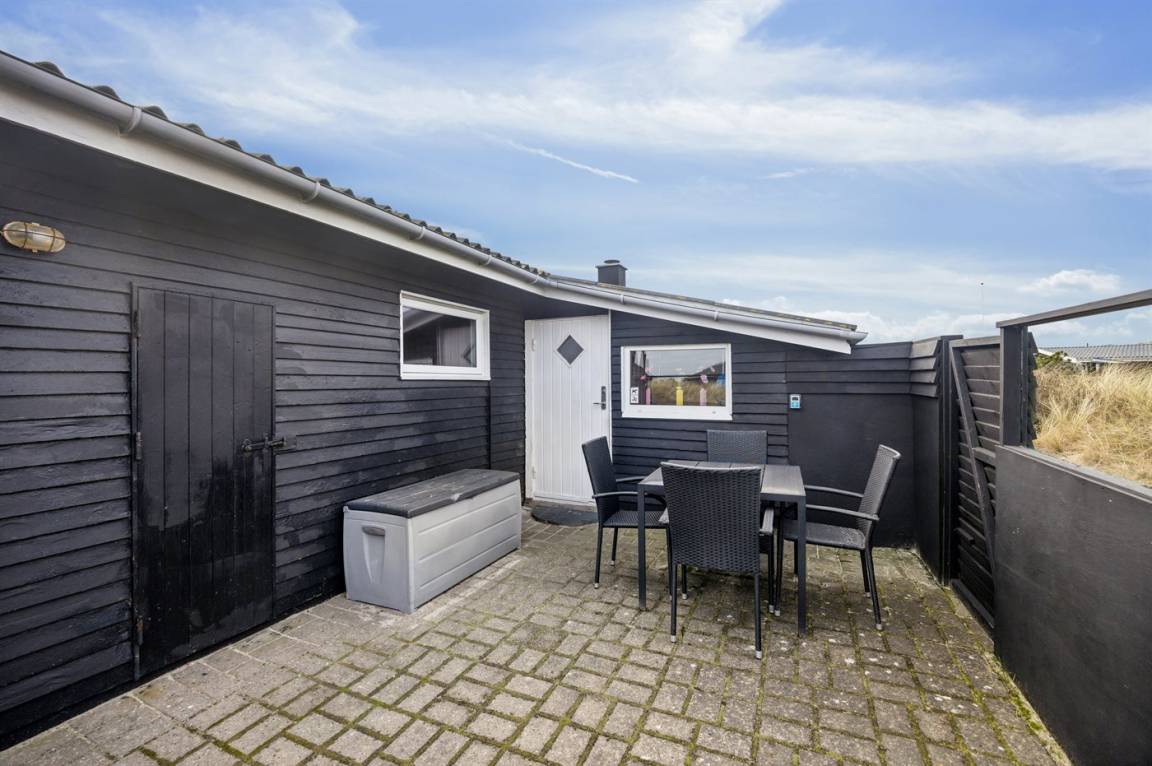 DraußenDie Ferienunterkunft liegt auf einem 300 m² großen Naturgrundstück. Die Entfernung zum Meer beträgt 250 m. Die nächste Einkaufsmöglichkeit liegt 1000 m entfernt. Davon insgesamt 35 m² geschlossene Terrasse. Parkplatz auf dem Grundstück.