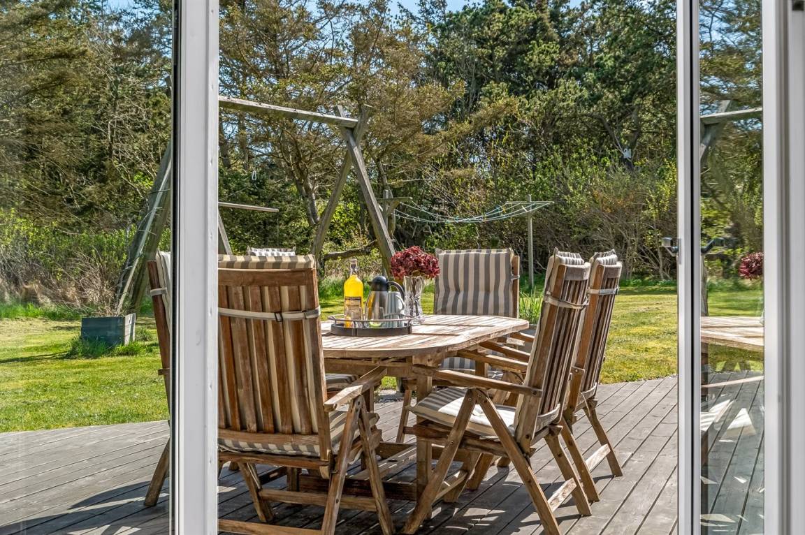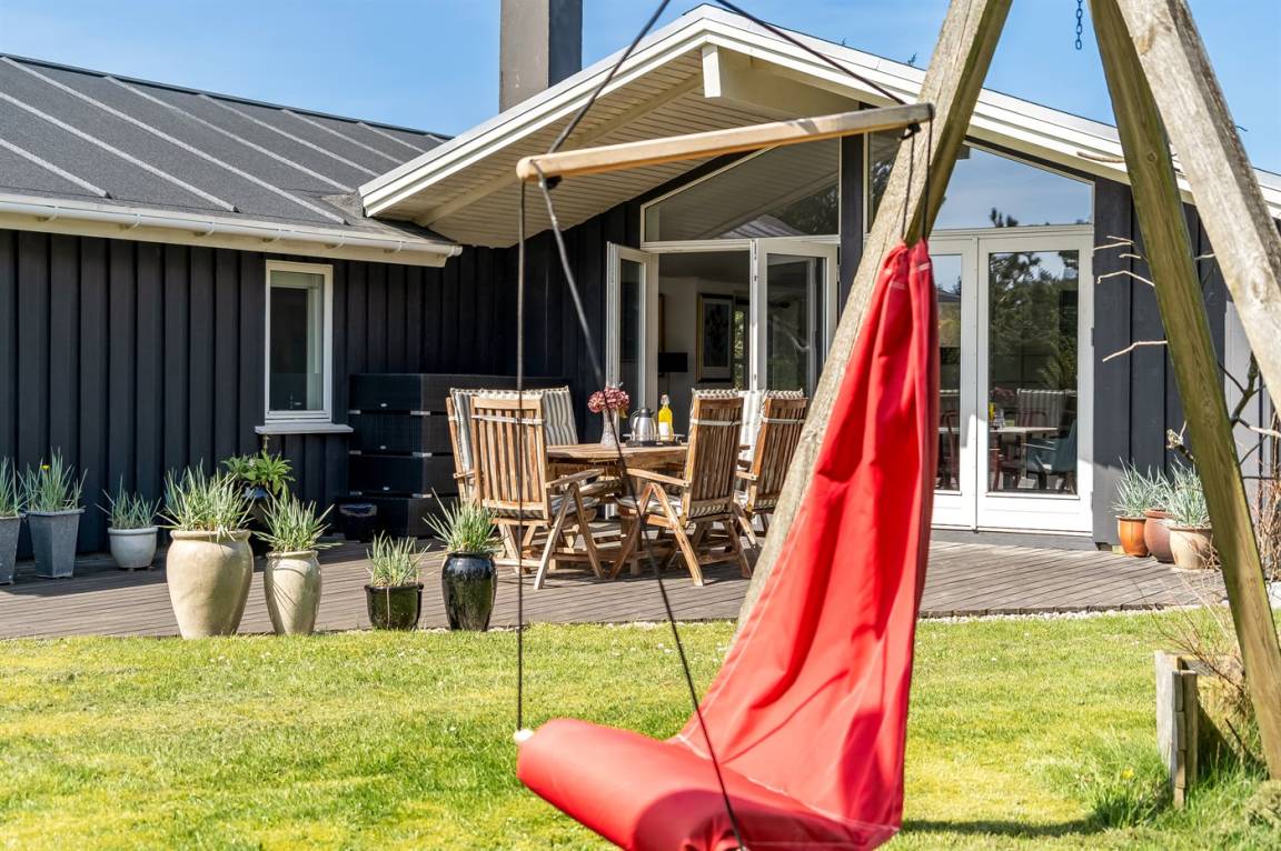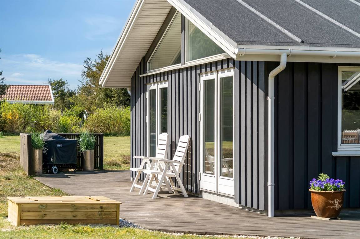 DraußenDie Ferienunterkunft liegt auf einem 2325 m² großen Gartengrundstück. Die Entfernung zum Meer beträgt 400 m. Die nächste Einkaufsmöglichkeit liegt 900 m entfernt. Es steht ein offenes Terrassenareal zur Verfügung. Außerdem gibt es überdachte Terrasse. Geräteraum. Schaukel. Sandkasten. Es steht ein Grill zur Verfügung. Parkplatz auf dem Grundstück.