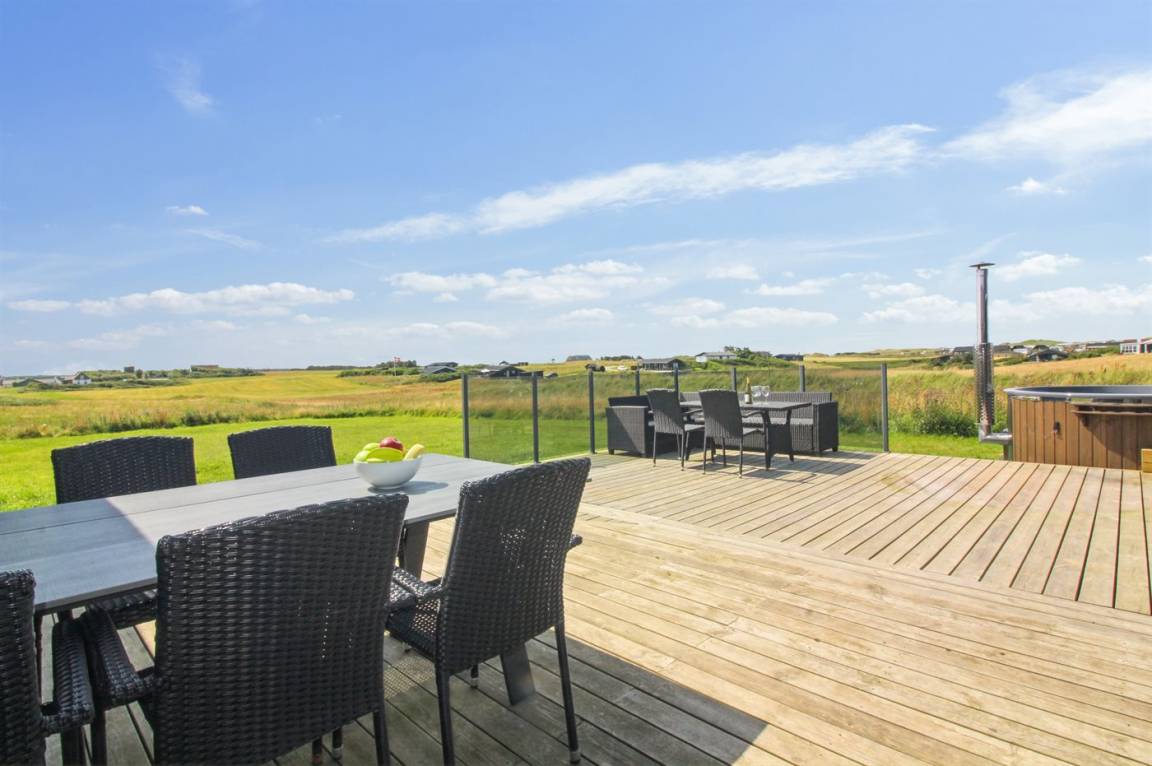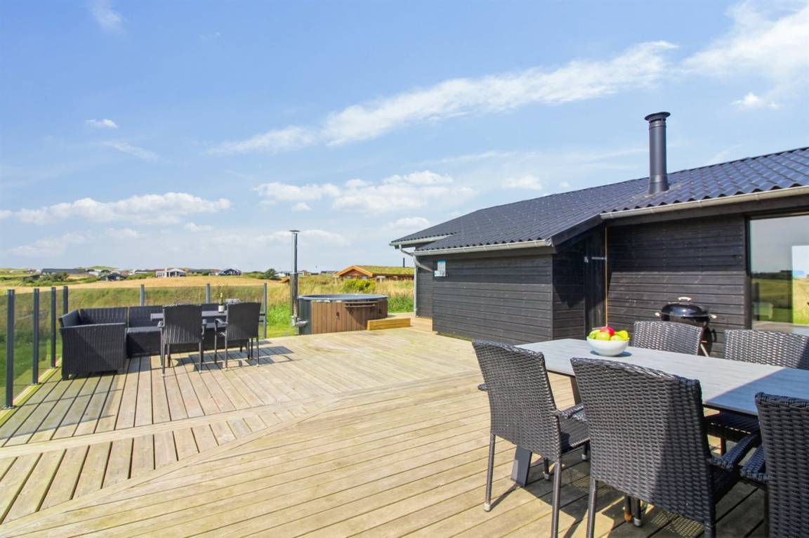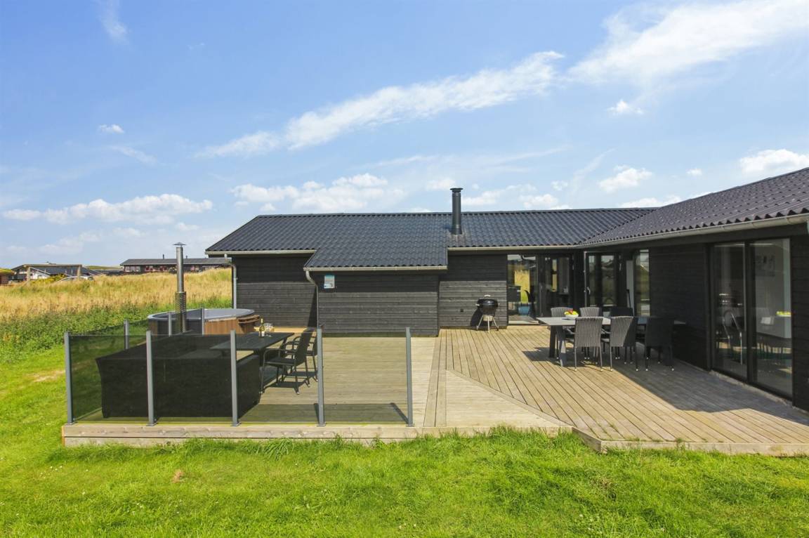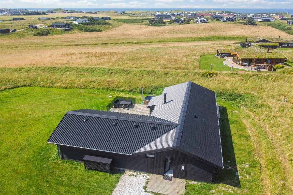 DraußenDie Ferienunterkunft liegt auf einem 1260 m² großen Naturgrundstück. Die Entfernung zum Meer beträgt 500 m. Die nächste Einkaufsmöglichkeit liegt 2000 m entfernt. In einem Abstand von 5500 m gibt es einen Golfplatz. Es steht ein offenes Terrassenareal zur Verfügung. Geräteraum. Es steht ein Grill zur Verfügung. Es ist ein Ladestecker für Elektroautos installiert. Ladestecker Typ 2. Parkplatz auf dem Grundstück.