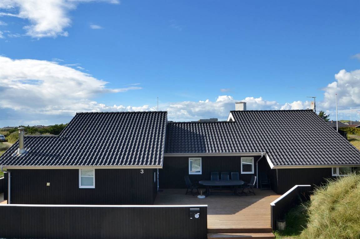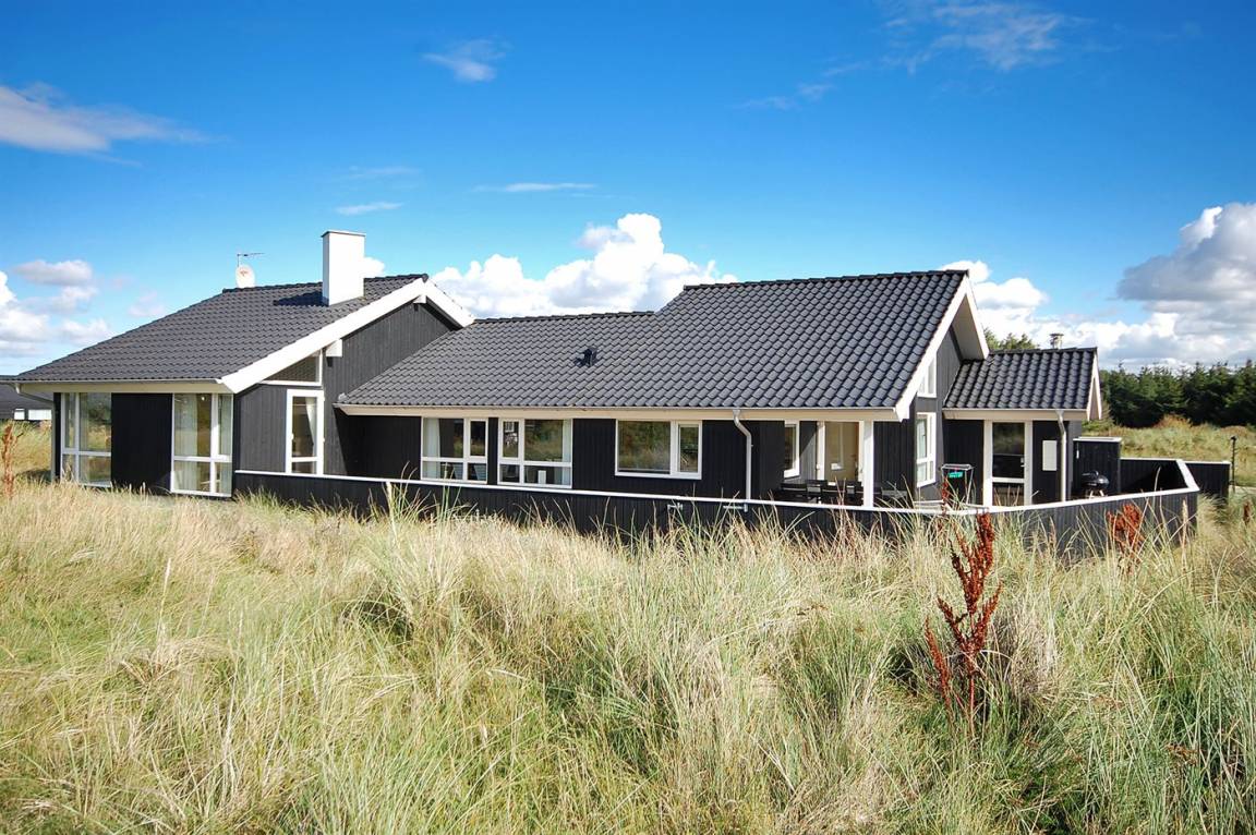In einem schönen Gebiet finden Sie dieses sehr schönes und spannende Ferienhaus. Das Haus verfügt über jeden denkbaren Komfort für einen besonderen Urlaub. Das Haus liegt in einem großen Naturgrundstück in einer Sackgasse - nur 350 m vom breiten, weißen Sandstrand in Grønhøj entfernt. Zum Haus gehört sowohl großes, offenes als auch überdachtes Terrassenareal - windgeschützt - und mit diversen Gartenmöbeln. 2 Schlafplätze im Obergeschoss.