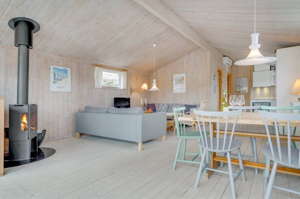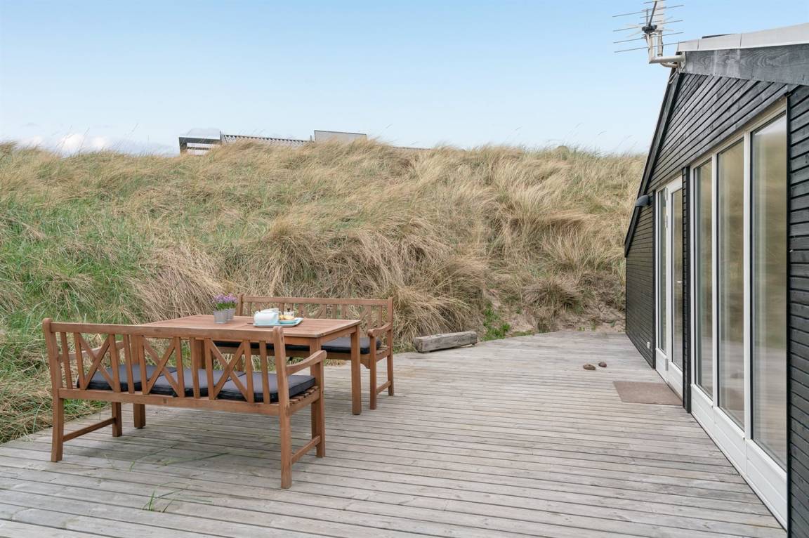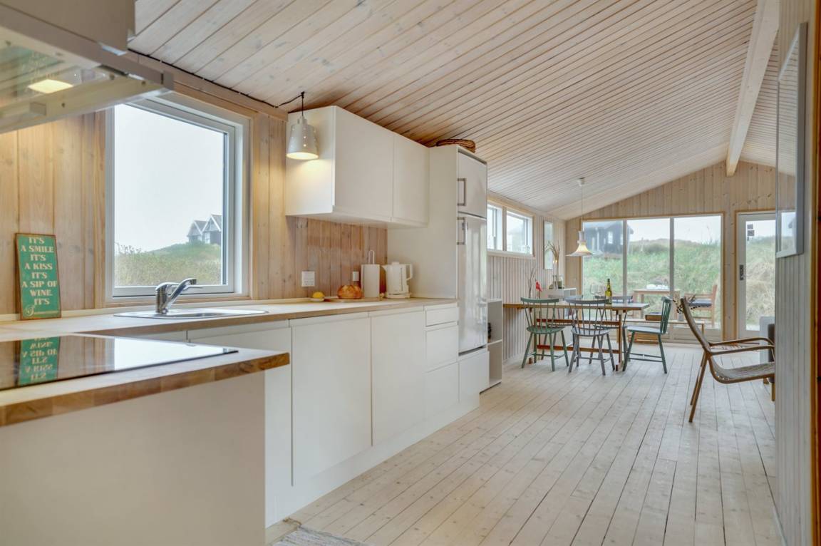 Dieses schöne Ferienhaus liegt in der ersten Dünenreihe zur Nordsee sehr nahe schönem Badestrand, flotter Natur und Løkken Stadt. Zum Haus gehört einer guten großen Terasse und im zugehörgen Gästehaus befinden sich 2 von den Schlafplätzen im Doppebett.