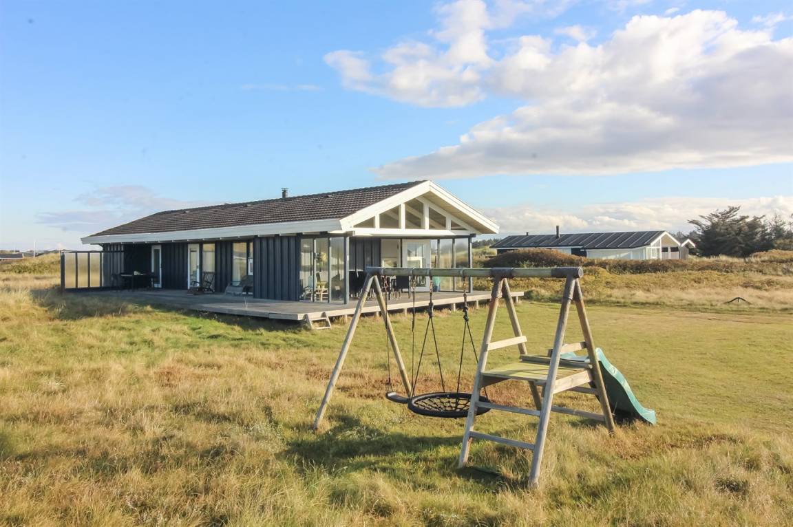 DraußenDie Ferienunterkunft liegt auf einem 2503 m² großen Dünengrundstück. Die Entfernung zum Meer beträgt 250 m. Die nächste Einkaufsmöglichkeit liegt 3500 m entfernt. In einem Abstand von 3500 m gibt es einen Golfplatz. Es steht ein offenes Terrassenareal zur Verfügung. Außerdem gibt es überdachte Terrasse. Schaukel. Rutsche. Es steht ein Grill zur Verfügung. Es ist ein Ladestecker für Elektroautos installiert. CEE Stecker. Mit einer Ladeleistung von 11 kW. Parkplatz auf dem Grundstück.