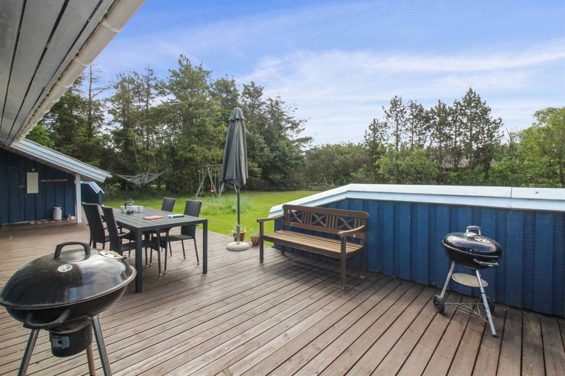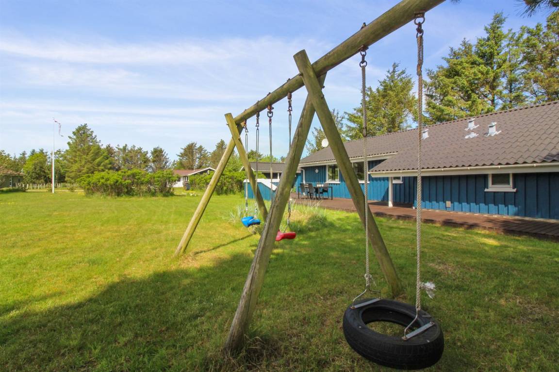 DraußenDie Ferienunterkunft liegt auf einem 1400 m² großen Naturgrundstück. Die Entfernung zum Meer beträgt 600 m. Die nächste Einkaufsmöglichkeit liegt 200 m entfernt. Es steht ein 100 m² Terrassenareal zur Verfügung. Geräteraum. Schaukel. Es steht ein Carport zur Verfügung. Parkplatz auf dem Grundstück.