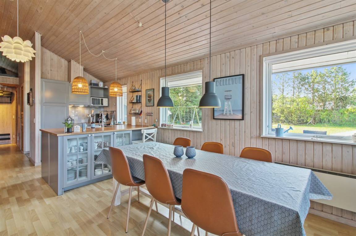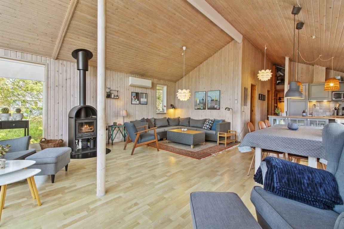 EinrichtungDas Ferienhaus eignet sich für 6 Personen sowie 1 Kleinkind bis zu 3 Jahren. Die Ferienunterkunft hat eine Wohnfläche von 100 m² und wurde 1994 gebaut. 2019 wurde die Ferienunterkunft teilweise renoviert. Haustiere dürfen nicht mitgebracht werden. Die Ferienunterkunft ist mit energiesparender Wärmepumpe ausgestattet. Die Ferienunterkunft ist mit Waschmaschine ausgestattet. Wäschetrockner. Tiefkühlmöglichkeit mit 15 Liter Nutzinhalt. Es gibt außerdem einen Kaminofen. Für die jüngsten Feriengäste ist 1 Kinderhochstuhl vorhanden.