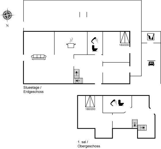 SchlafverhältnisseDie Schlafplätze verteilen sich auf 2 Schlafräume. 4 Schlafplätze in Doppelbetten. Es gibt 2 zusätzliche Aufbettungsmöglichkeiten in Gästebetten. Ferner steht ein Kinderbett zur Verfügung.