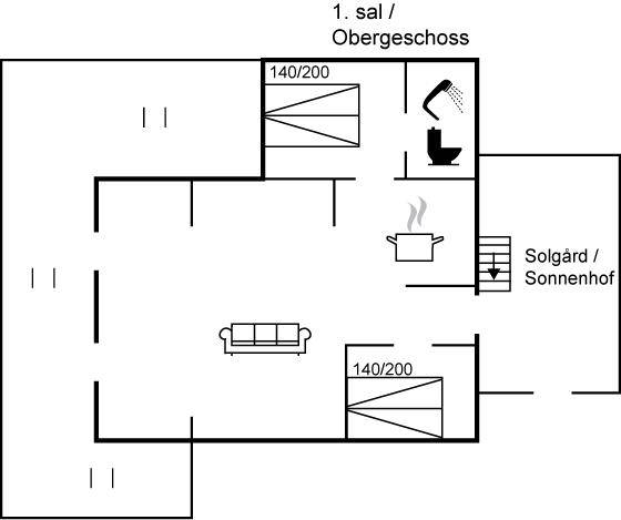 SchlafverhältnisseDie Schlafplätze verteilen sich auf 2 Schlafräume. 4 Schlafplätze in Doppelbetten.