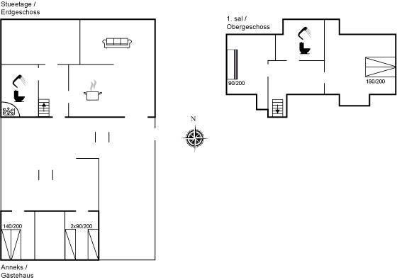 SchlafverhältnisseDie Schlafplätze verteilen sich auf 4 Schlafräume. 4 Schlafplätze in Doppelbetten. 2 Schlafplätze in Einzelbetten. 2 Schlafplätze in einem Etagenbett. 4 von diesen Schlafplätzen befinden sich im Gästehaus.