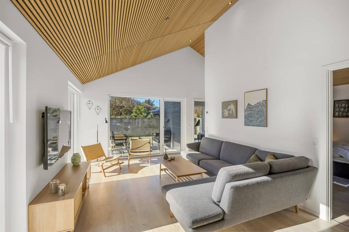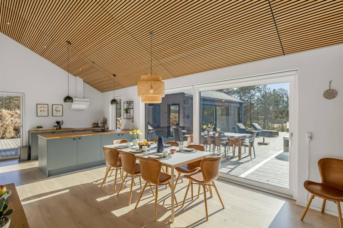 In Strandnähe findest du dieses schöne, neu gebaute Ferienhaus in Nr. Lyngby. Es liegt in naturschöner Umgebung am Ende einer ungestörten Straße in einem bereits etablierten Gebiet. Das Haus befindet sich auf einem Naturgrundstück mit einer großen, schönen Holzterrasse, die dir und deiner Familie viel Platz bietet.