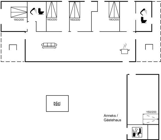 SchlafverhältnisseDie Schlafplätze verteilen sich auf 4 Schlafräume. 8 Schlafplätze in Doppelbetten.2 Schlafplätze auf Schlafcouchen (einzeln). 2 von diesen Schlafplätzen befinden sich im Gästehaus. Fußbodenheizung im Gästehaus.