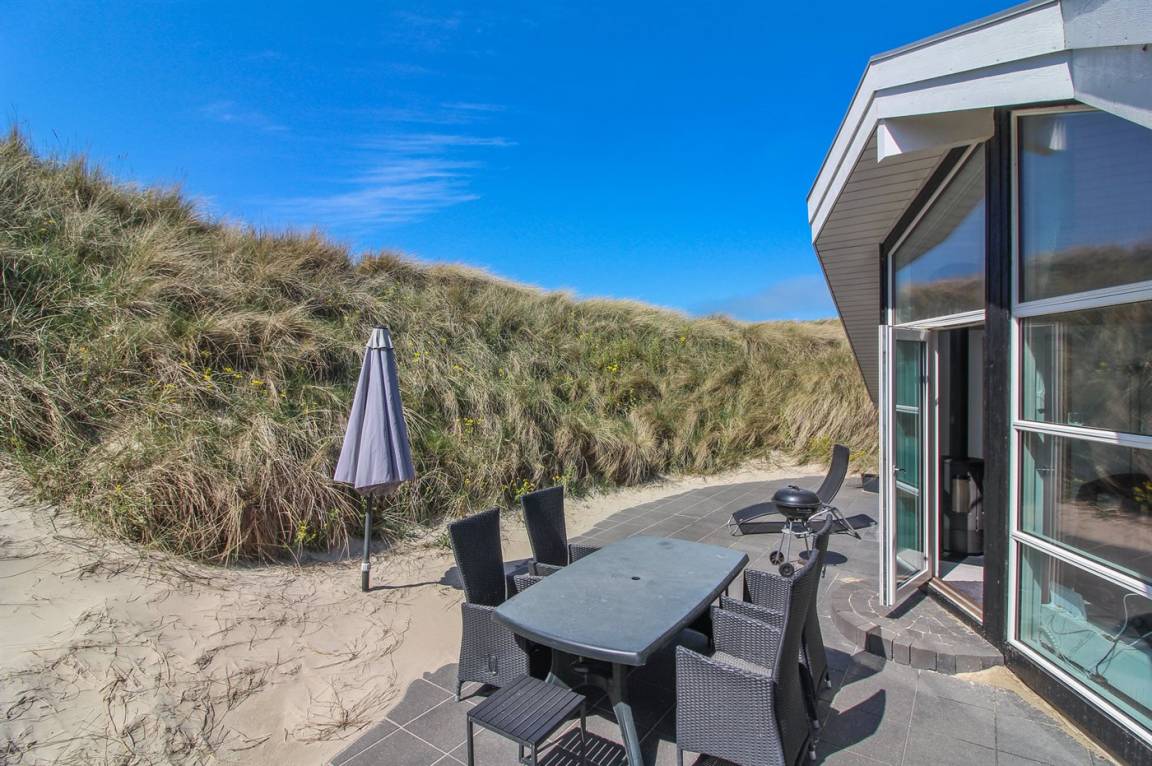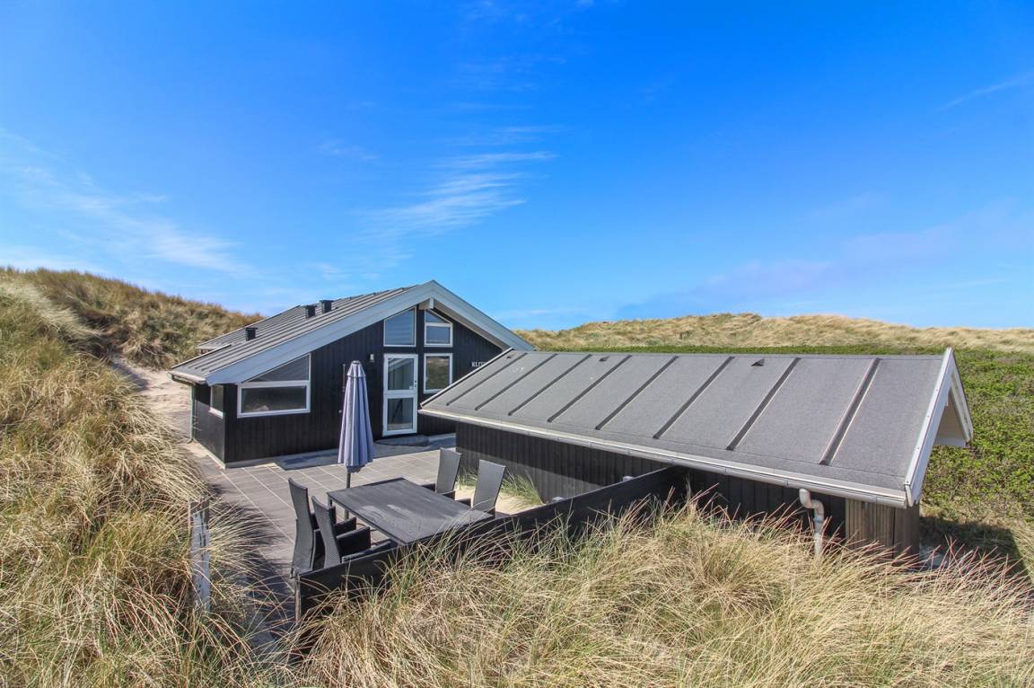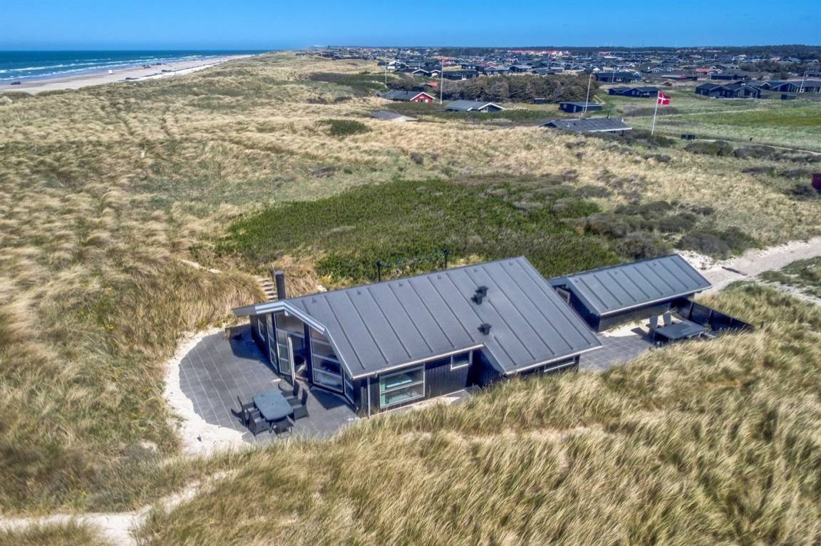 DraußenDie Ferienunterkunft liegt auf einem 1400 m² großen Dünengrundstück. Die Entfernung zum Meer beträgt 25 m. Die nächste Einkaufsmöglichkeit liegt 1600 m entfernt. Es steht ein 90 m² Terrassenareal zur Verfügung. Geräteraum. Parkplatz auf dem Grundstück.