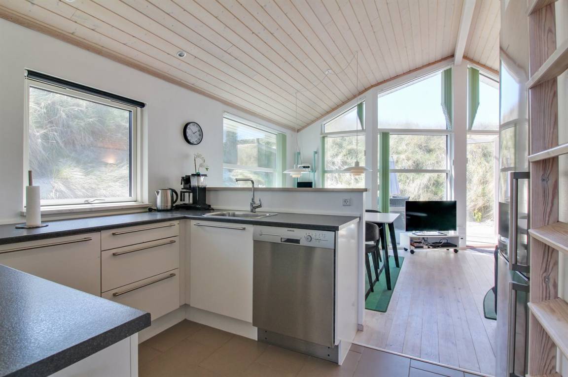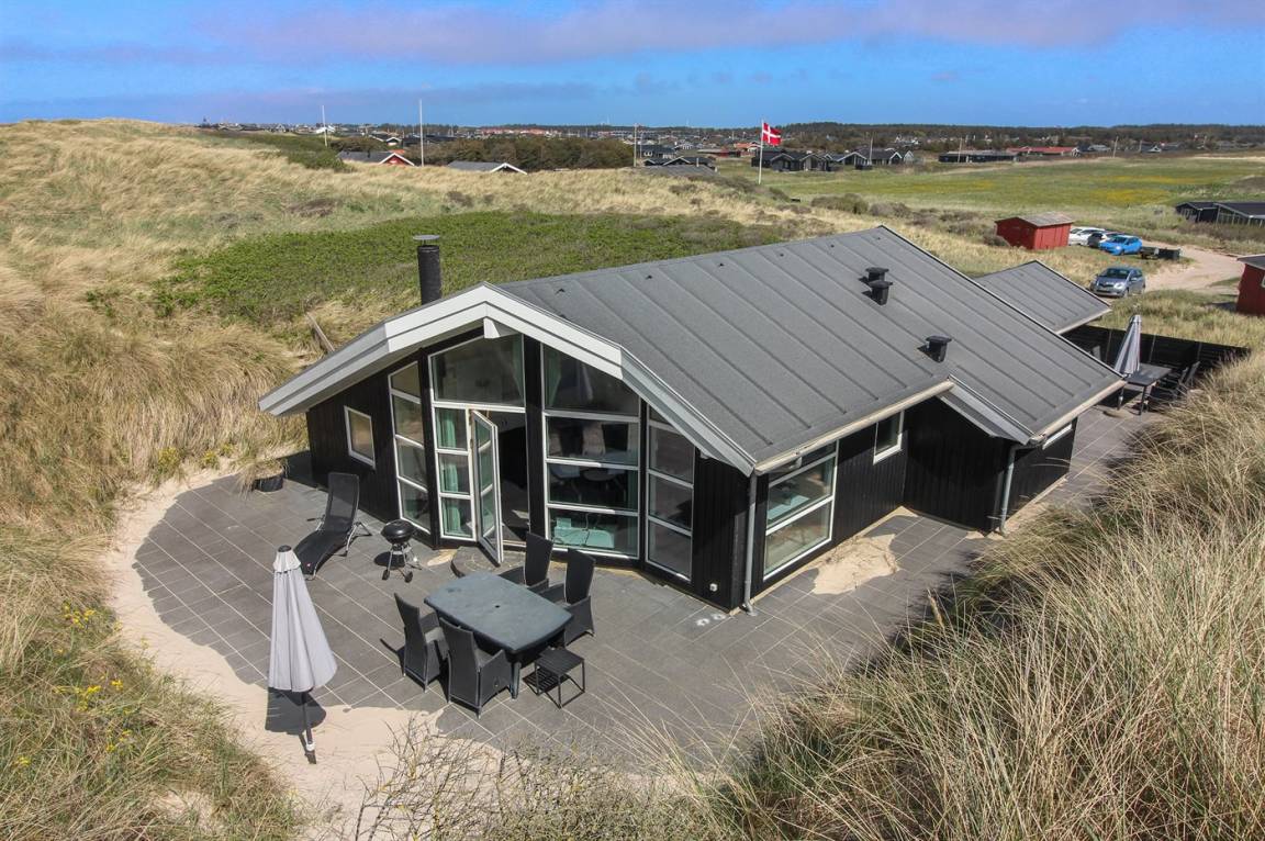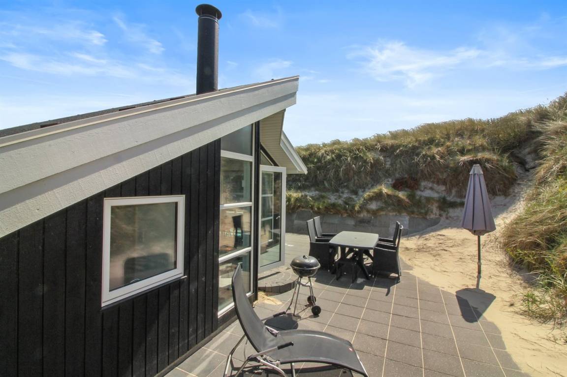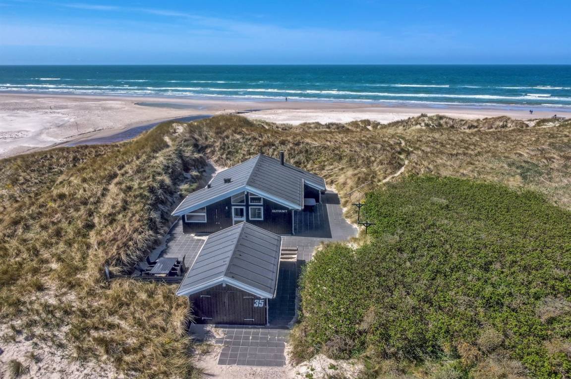 DraußenDie Ferienunterkunft liegt auf einem 1400 m² großen Dünengrundstück. Die Entfernung zum Meer beträgt 25 m. Die nächste Einkaufsmöglichkeit liegt 1600 m entfernt. Es steht ein 90 m² Terrassenareal zur Verfügung. Geräteraum. Parkplatz auf dem Grundstück.