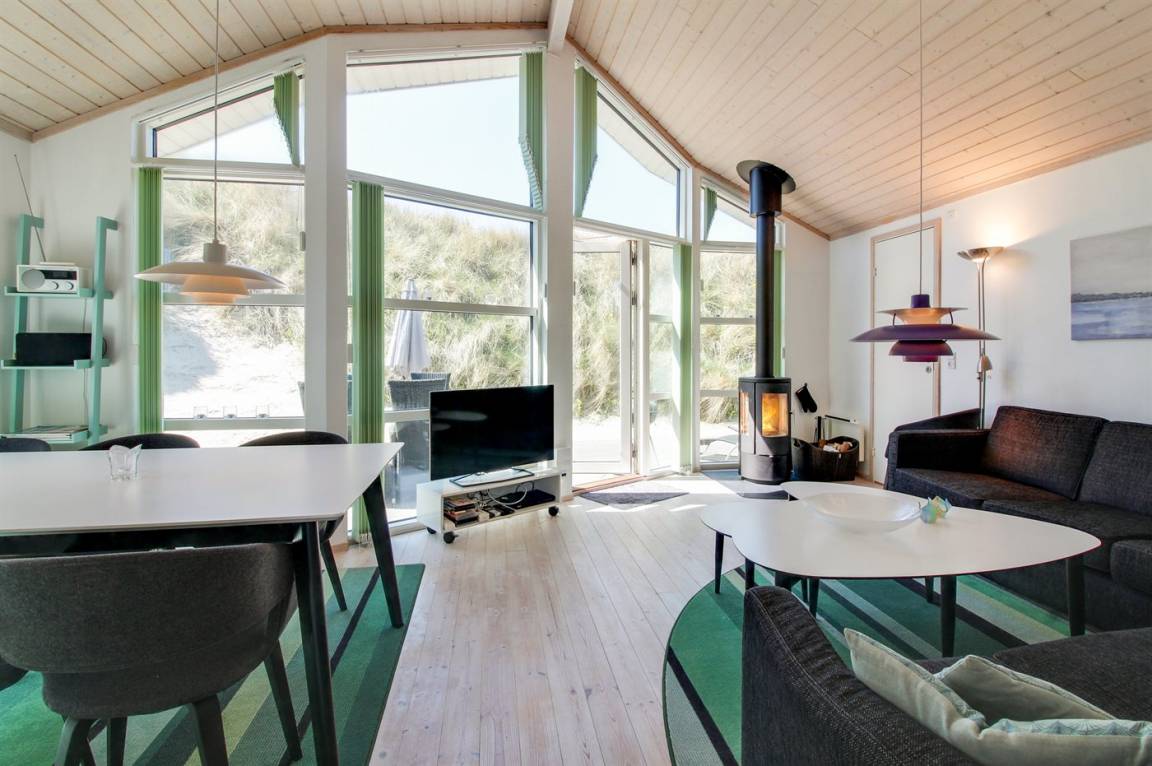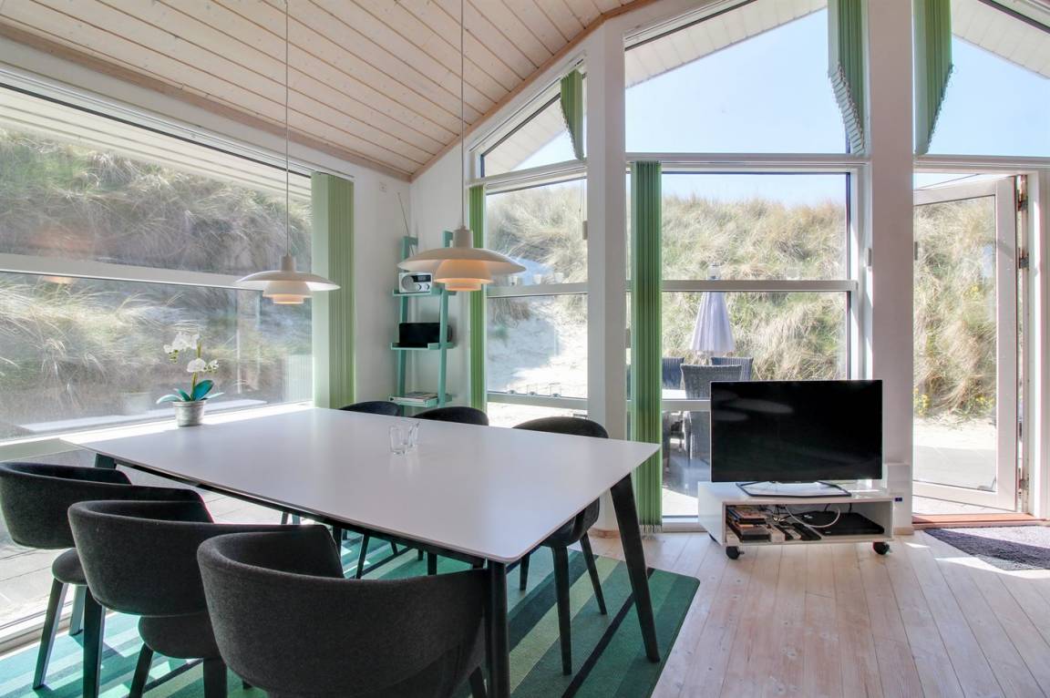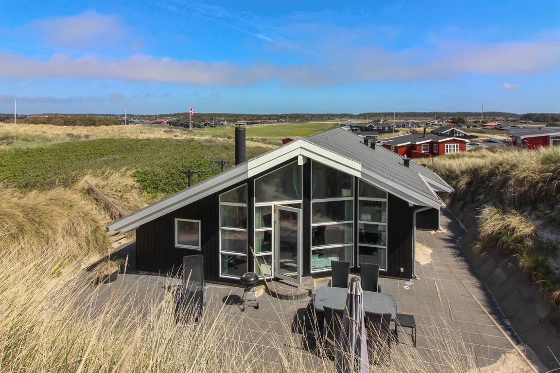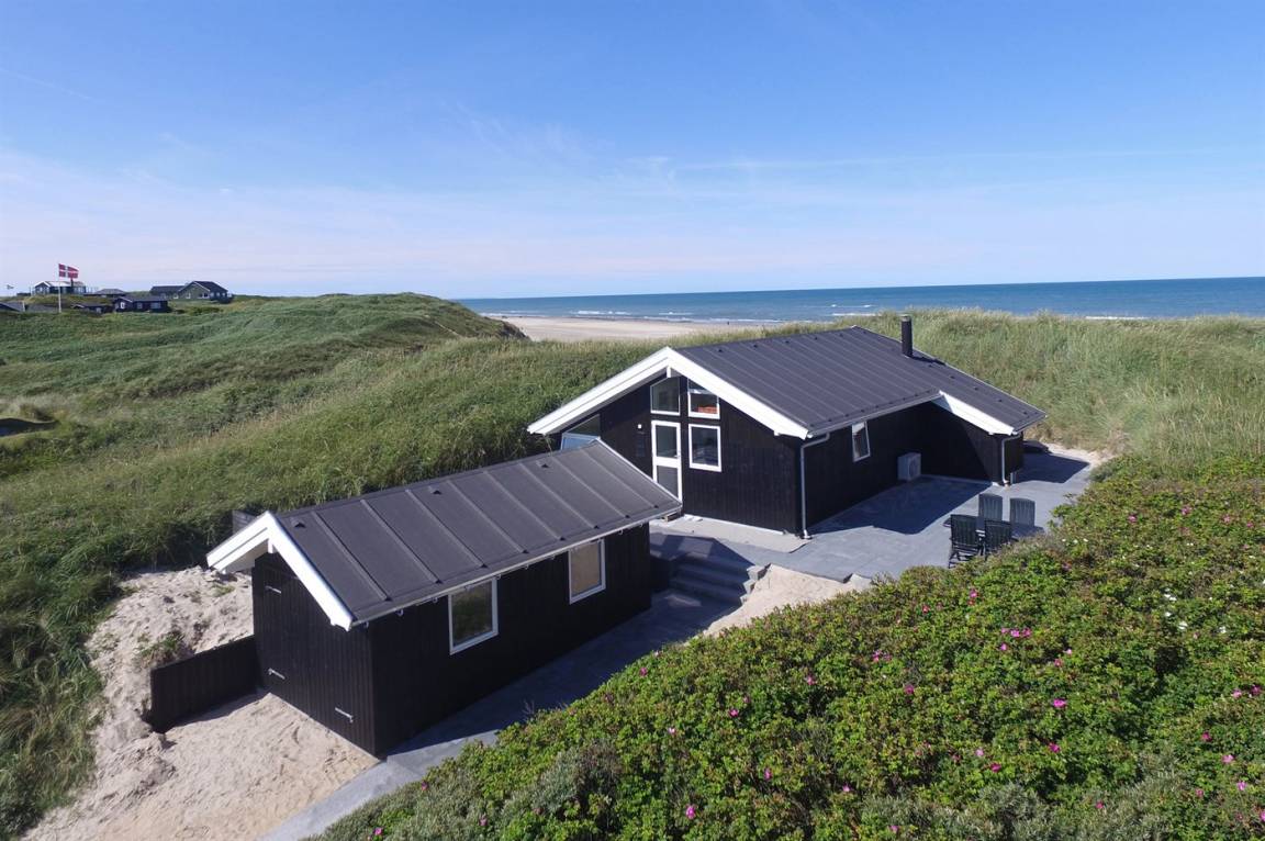 Dieses schöne und neu gebaute Ferienhaus, mit Meeresblick vom Grundstück, liegt im Schutz der Dünen, in der ersten Dünenreihe zum Meer hinaus.