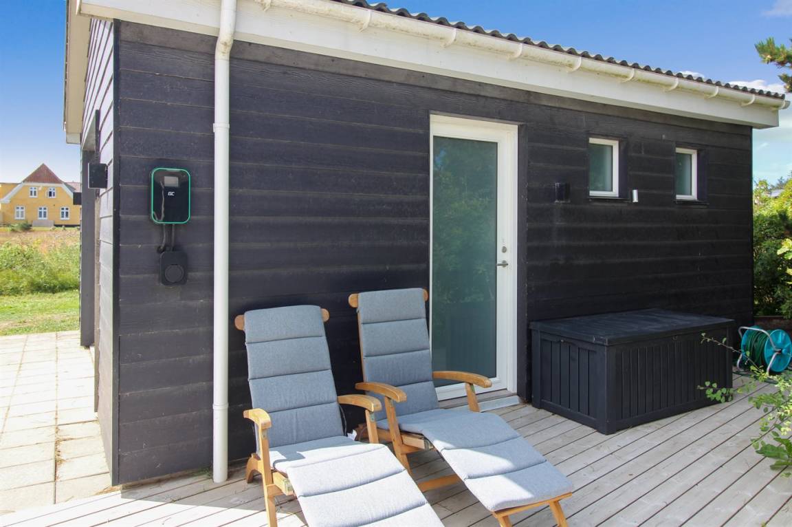 DraußenDie Ferienunterkunft liegt auf einem 2085 m² großen Naturgrundstück. Die Entfernung zum Meer beträgt 500 m. Die nächste Einkaufsmöglichkeit liegt 500 m entfernt. In einem Abstand von 2000 m gibt es einen Golfplatz. Es steht ein 100 m² Terrassenareal zur Verfügung. Zutritt zu einem Wintergarten. Schaukel. Sandkasten. Rutsche.Lagerfeuerstelle.Es steht eine Garage zur Verfügung. Es ist ein Ladestecker für Elektroautos installiert. Mit einer Ladeleistung von 11 kW. Parkplatz auf dem Grundstück.