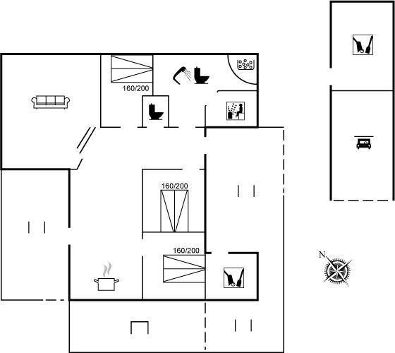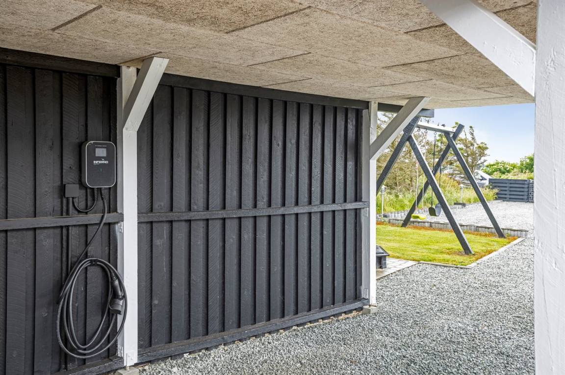 DraußenDie Ferienunterkunft liegt auf einem 1550 m² großen Naturgrundstück. Die Entfernung zum Meer beträgt 700 m. Die nächste Einkaufsmöglichkeit liegt 1800 m entfernt. In einem Abstand von 1900 m gibt es einen Golfplatz. Es steht ein 45 m² Terrassenareal zur Verfügung. Außerdem gibt es 15 m² überdachte Terrasse. Geräteraum. Schaukel. Sandkasten. Es steht ein Carport zur Verfügung. Es ist ein Ladestecker für Elektroautos installiert. Parkplatz auf dem Grundstück.