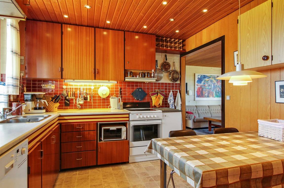 Ein schönes Sommerhaus mit Atmosphäre und Charme – im Retro-Stil gehalten, jedoch mit modernen Annehmlichkeiten und Komfort. Ein sehr gut ausgestattetes und sinnvoll eingerichtetes Haus mit separatem Schlafbereich, Sauna und Außenküche. In diesem Haus ist für alle Familienmitglieder etwas dabei, egal ob man sich am liebsten im Freien aufhält oder es sich drinnen gemütlich machen möchte.