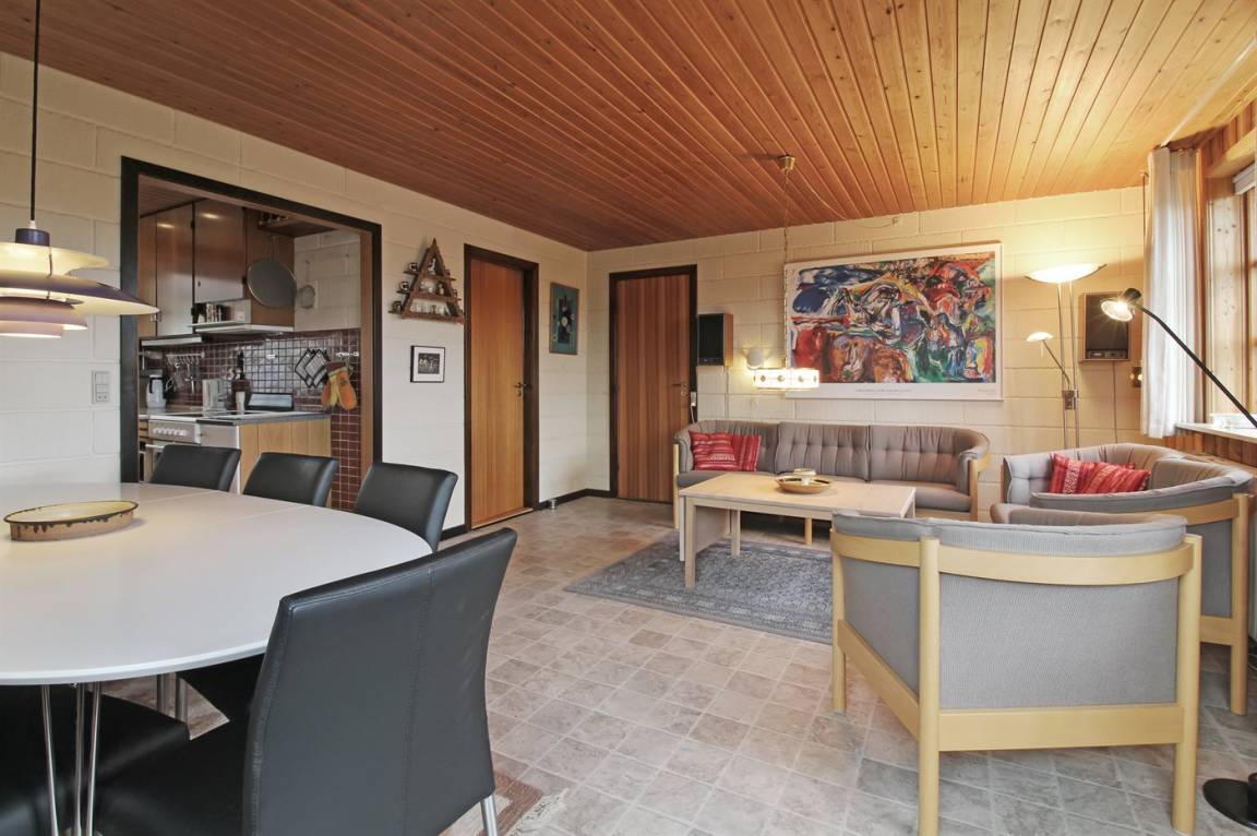 Das Ferienhaus eignet sich für 8 Personen. 2 der Schlafplätze eignen sich jedoch nur für größere Kinder (4-11 Jahre). Die Ferienunterkunft hat eine Wohnfläche von 130 m² und wurde 1971 gebaut. 2013 wurde die Ferienunterkunft teilweise renoviert. Es ist erlaubt 1 Haustier mitzubringen. Die Ferienunterkunft ist mit Waschmaschine ausgestattet. Wäschetrockner. Tiefkühlmöglichkeit mit 150 Liter Nutzinhalt. Es gibt außerdem einen Kaminofen. Für die jüngsten Feriengäste ist 1 Kinderhochstuhl vorhanden.