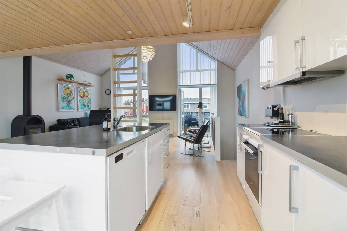 Die Wohnung liegt in Laufweite zum Stadtzentrum mit einem gemütlichen Platz, der von Geschäften und Restaurants umgeben ist. Im Sommer herrscht hier eine südländische Stimmung, und die Geschäfte sind das ganze Jahr über geöffnet. Løkken ist auch bekannt für seine Altstadt, in der die Fischerhäuser in langen Reihen miteinander verbunden sind. Das Løkken Schwimmbad liegt zentral für die Mieter der Wohnung und ist bei jedem Wetter ein attraktives Ziel.