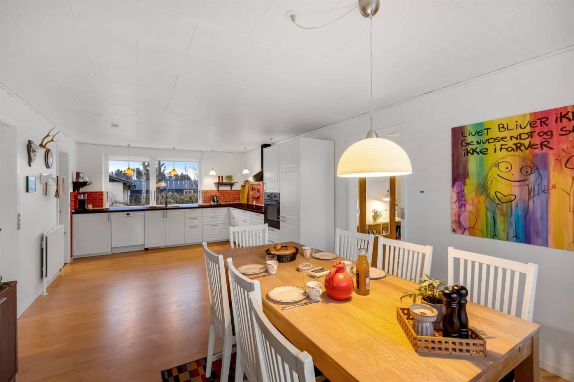 Ein schönes Ferienhaus in Grønhøj. Das Haus ist kein traditionelles Ferienhaus, die Einrichtung ist jedoch hell und gemütlich und es herrscht ein gutes Ambiente.