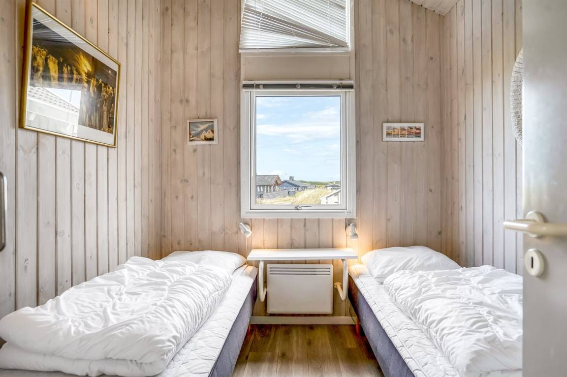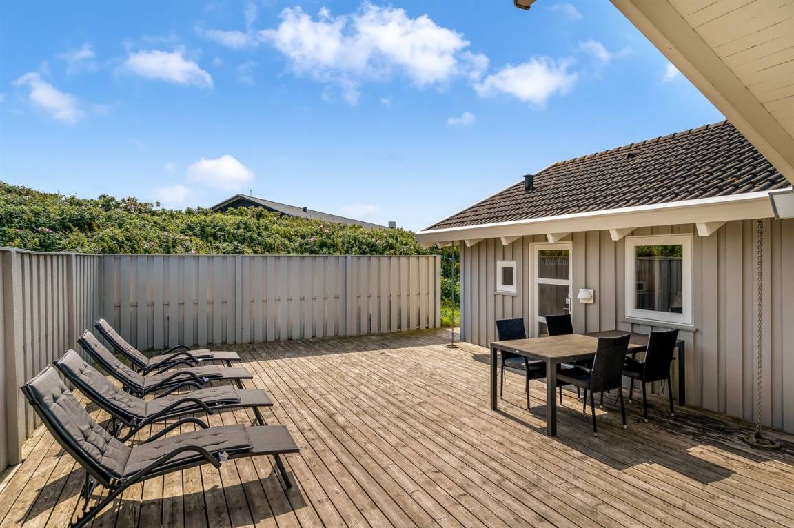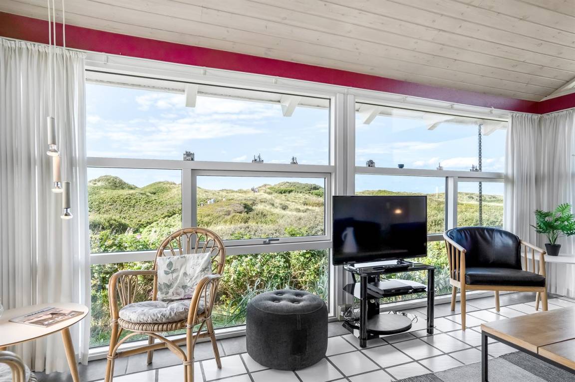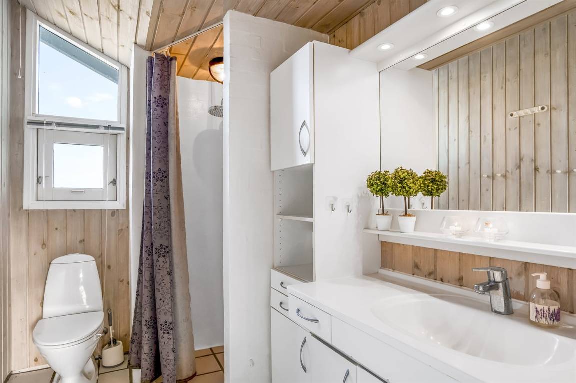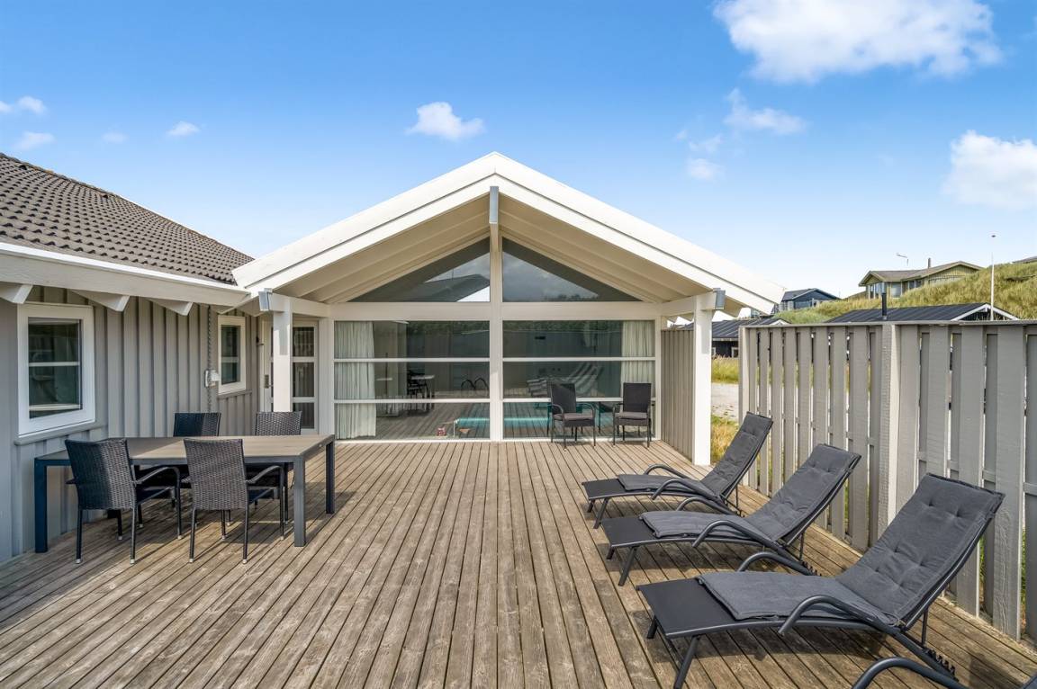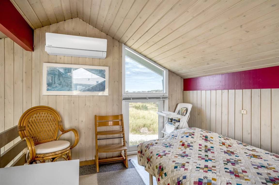 Dieses schöne Ferienhaus ist in versetzten Ebenen gebaut und im Wohnzimmer gibt es ein großes offenes Obergeschoss, wo die Kinder spielen können, während die Erwachsenen es sich im Wohnzimmer oder in der Küche gemütlich machen. Das Haus hat eine ganz einmalige Lage in der ersten Dünenreihe und am Ende einer Sackgasse, auf einem sehr großen und leicht hügeligen Dünengrundstück. Von hier aus führt ein Pfad direkt an den schönen Strand der Nordsee und sowohl vom Haus als auch vom Grundstück aus hat man einen herrlichen Blick auf die Nordsee und die faszinierende Dünenlandschaft. Vom höchsten Punkt der Dünen aus gibt es außerdem einen 180-Grad-Blick über die Bucht "Jammerbugten".