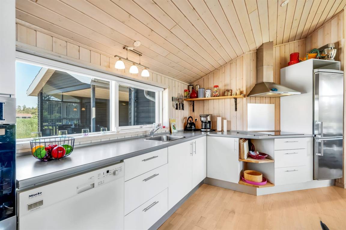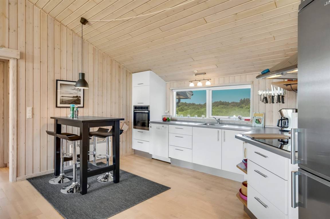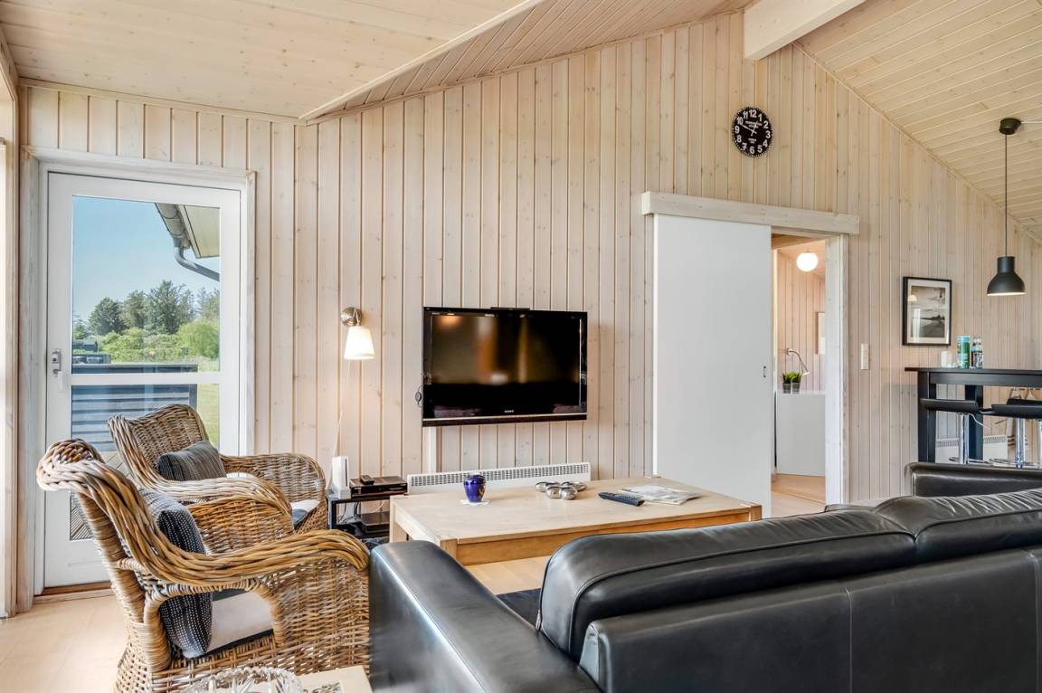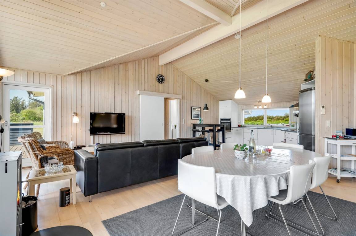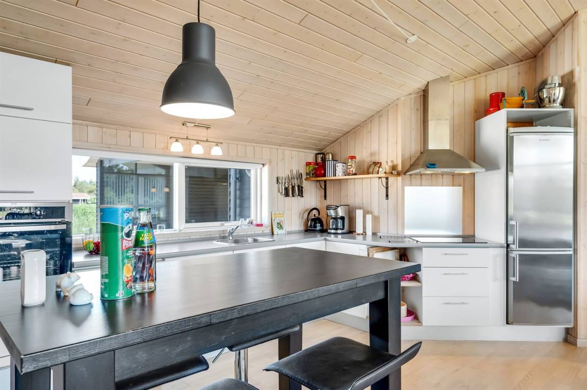 Ein schönes und geräumiges Ferienhaus, das in einer ruhigen und naturschönen Ferienhausgegend liegt, wo du wunderbar im Wald oder am Strand entspannen kannst. Das Haus liegt auf einem offenen Grundstück und ist hell und freundlich eingerichtet, mit vielen netten Details.