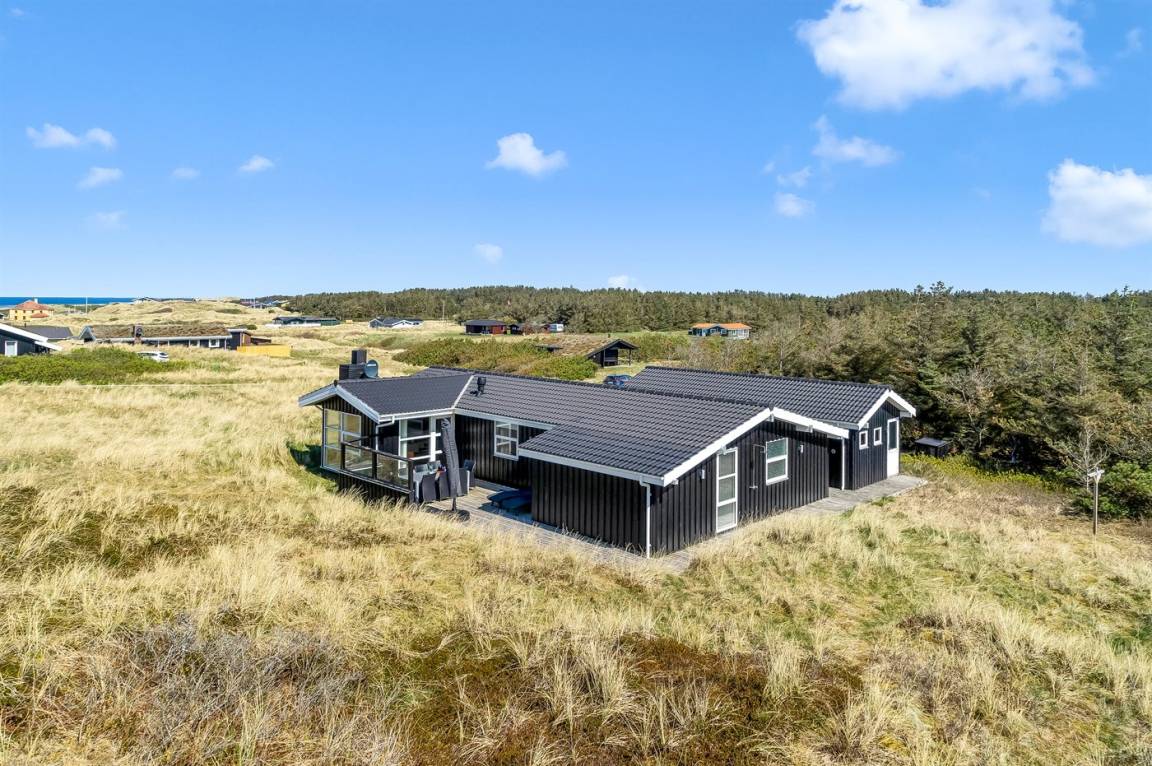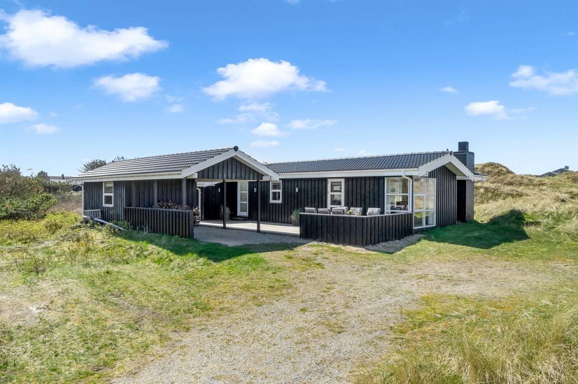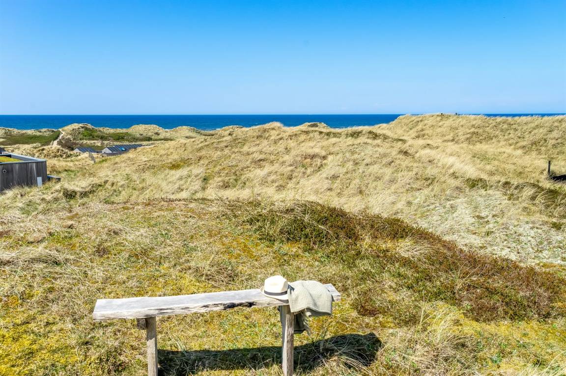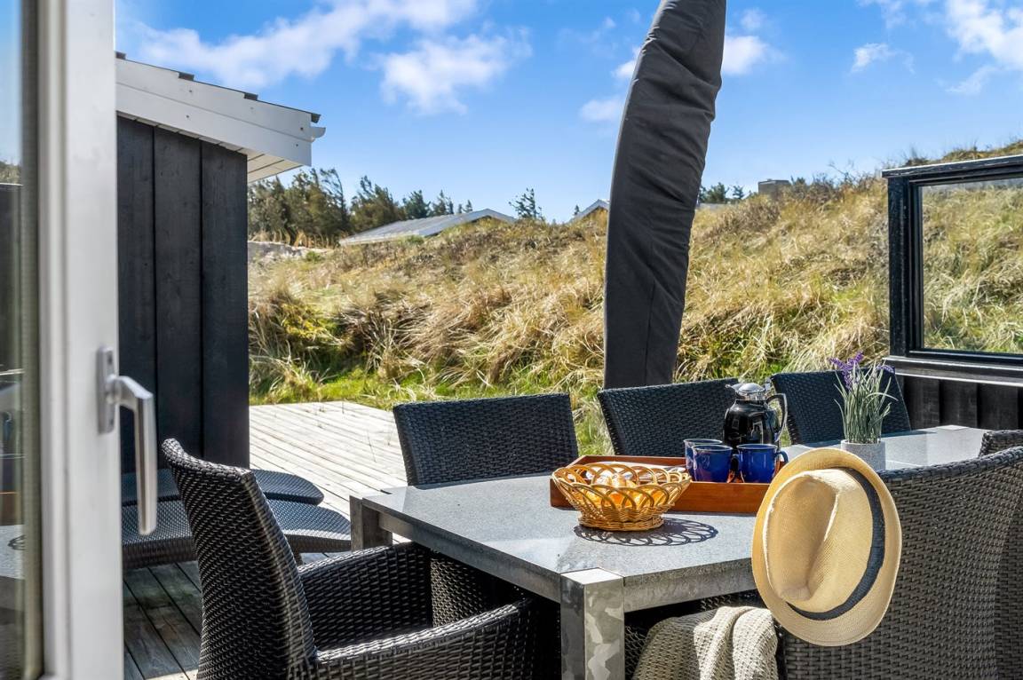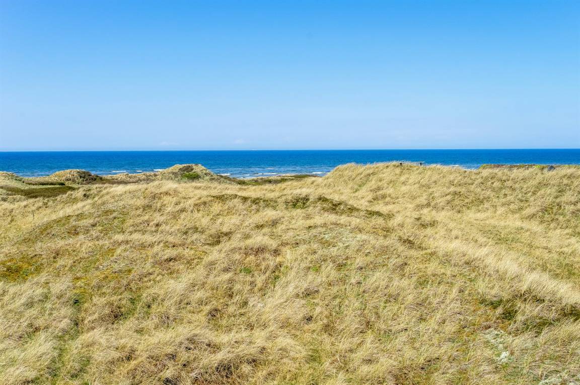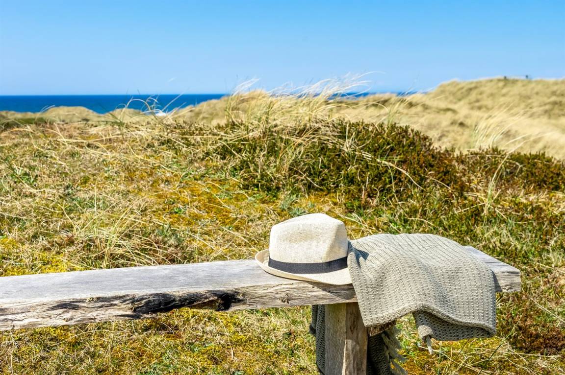 Auf einem hügeligen Dünengrundstück in der natürlichen Ferienumgebung von Grønhoj liegt dieses herrliche Ferienhaus mit einem Wohnraum mit Meerblick. Auf dem höchsten Punkt des Grundstücks steht eine Bank, von der aus Sie die Aussicht und den Sonnenuntergang über dem Meer genießen können.