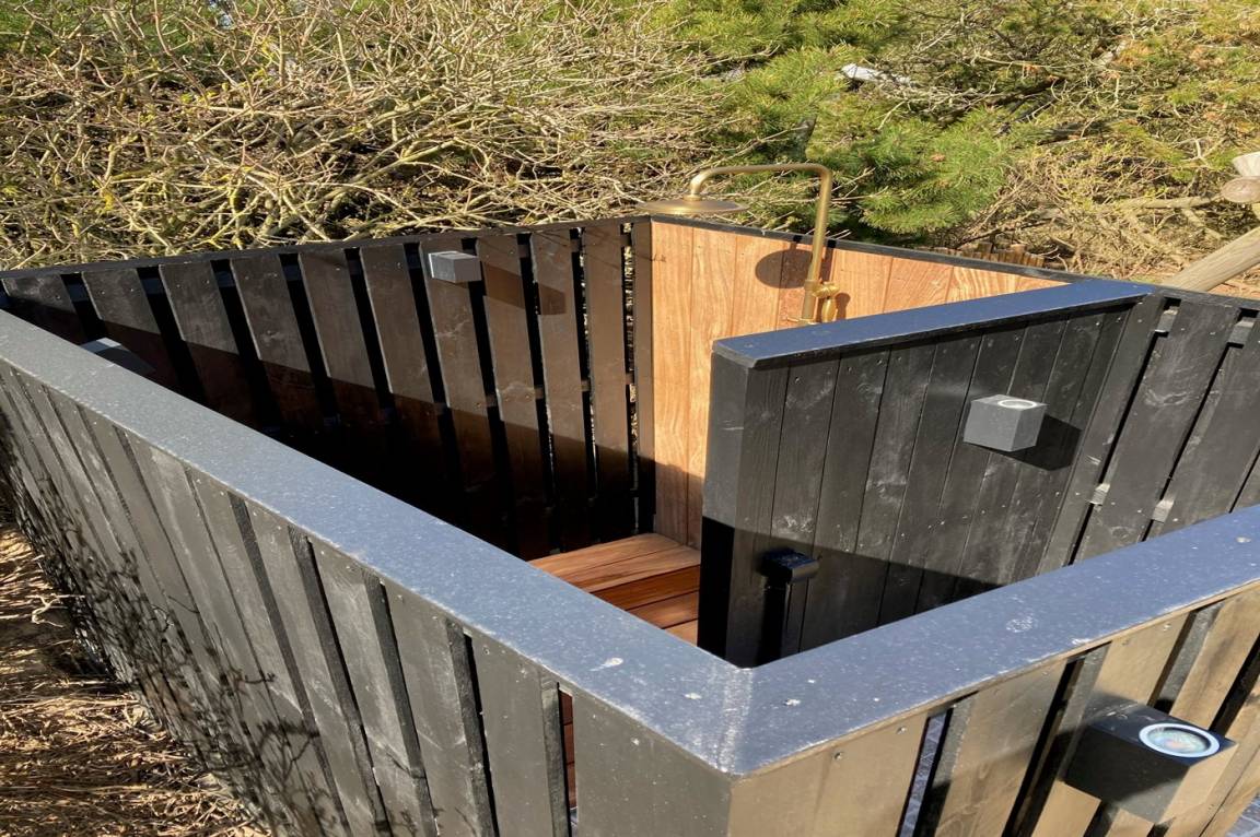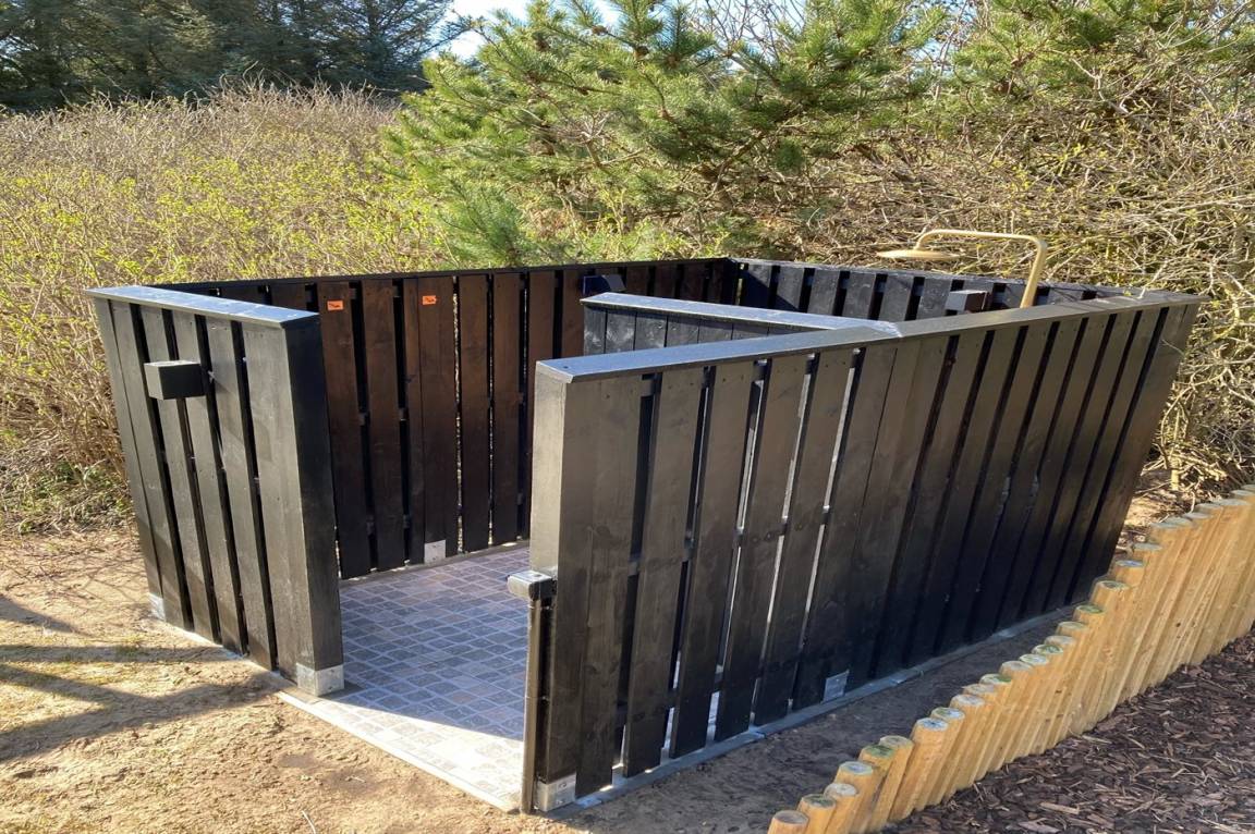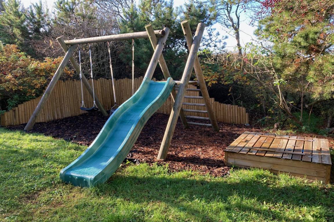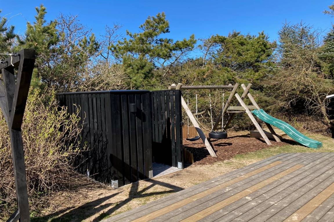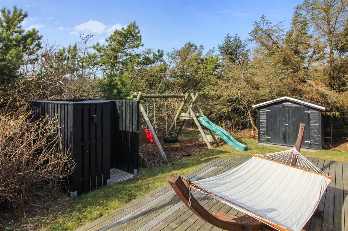 DraußenDie Ferienunterkunft liegt auf einem 1400 m² großen Naturgrundstück. Das Grundstück ist eingezäunt. Die Entfernung zum Meer beträgt 300 m. Die nächste Einkaufsmöglichkeit liegt 5000 m entfernt. Es steht ein 80 m² Terrassenareal zur Verfügung. Außerdem gibt es 8 m² überdachte Terrasse. Geräteraum. Es steht ein Schaukelgerüst mit 2 Schaukeln und Rutsche zur Verfügung. Sandkasten.Lagerfeuerstelle. Außendusche. Es ist ein Ladestecker für Elektroautos installiert. Parkplatz auf dem Grundstück.