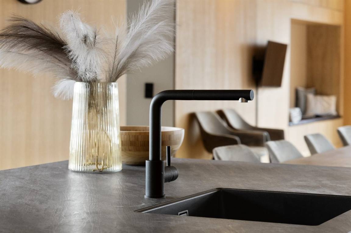 KücheDie Küche ist mit Kühlschrank ausgestattet. Außerdem gibt es 4 Induktions-Kochzonen, Umluftofen sowie Geschirrspüler.