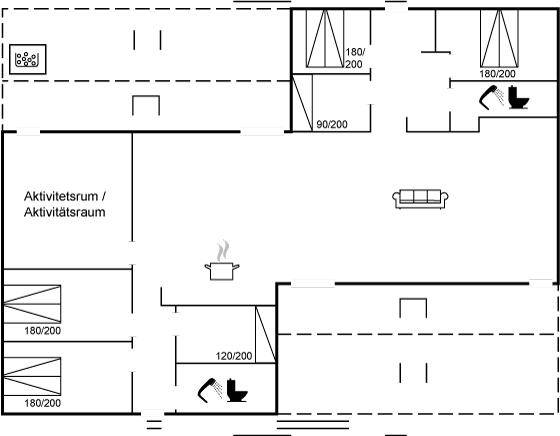 Das Ferienhaus eignet sich für 12 Personen. 2 der Schlafplätze eignen sich jedoch nur für größere Kinder (4-11 Jahre). Die Ferienunterkunft hat eine Wohnfläche von 184 m² und wurde 2022 gebaut. Es ist erlaubt 1 Haustier mitzubringen. Es gibt Fernwärme. Fußbodenheizung in allen Räumen. Die Ferienunterkunft ist mit Waschmaschine ausgestattet. Wäschetrockner. Tiefkühlmöglichkeit mit 30 Liter Nutzinhalt. Für die jüngsten Feriengäste ist 1 Kinderhochstuhl vorhanden. Wickeltisch.