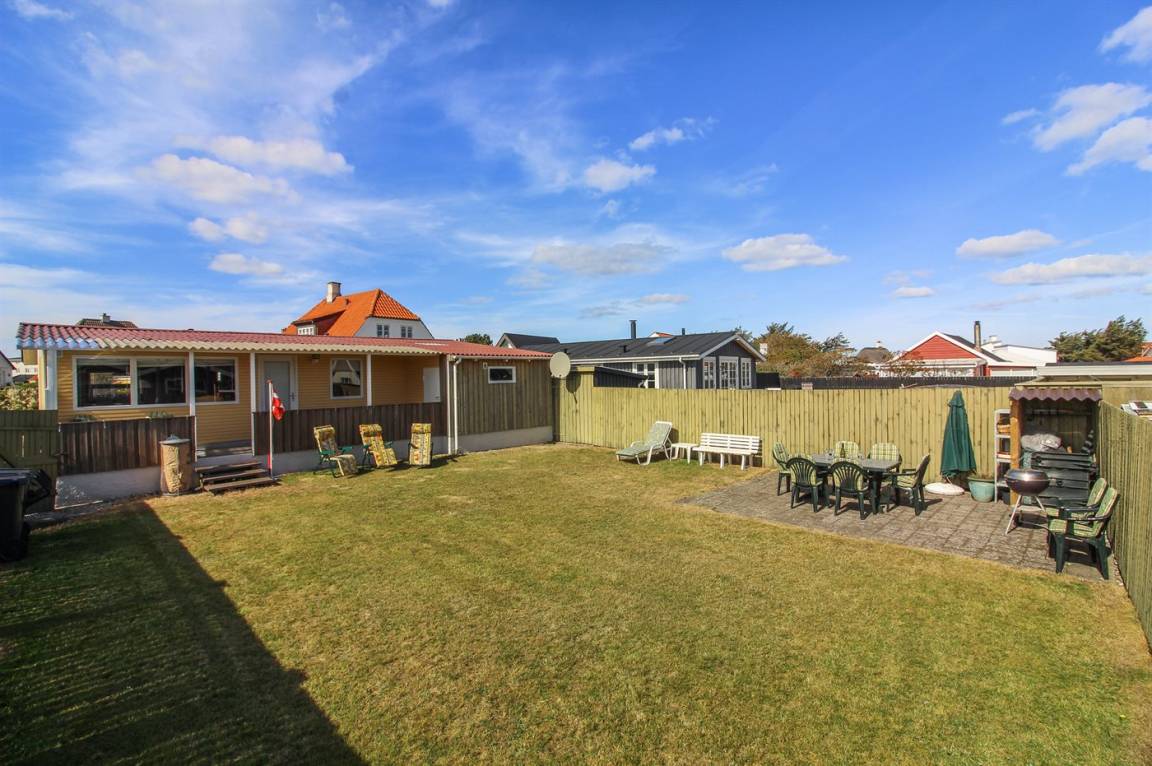 Ein klassisches Stadtferienhaus für einen einzigartigen Urlaub. In diesem schönen Haus, das auf einem Privatweg in Løkken liegt, gibt es Platz für mehrere Generationen. Das Haus wurde 1937 erbaut und die Wohnfläche verteilt sich auf zwei Bereiche – beide mit eigenem Eingang, Wohnzimmer, Schlafzimmer und Toilette. In dem einen Wohnzimmer stehen außerdem eine kleine Teeküche mit eigenem Kühlschrank und eine Schlafcouch zur Verfügung.
