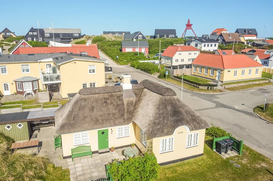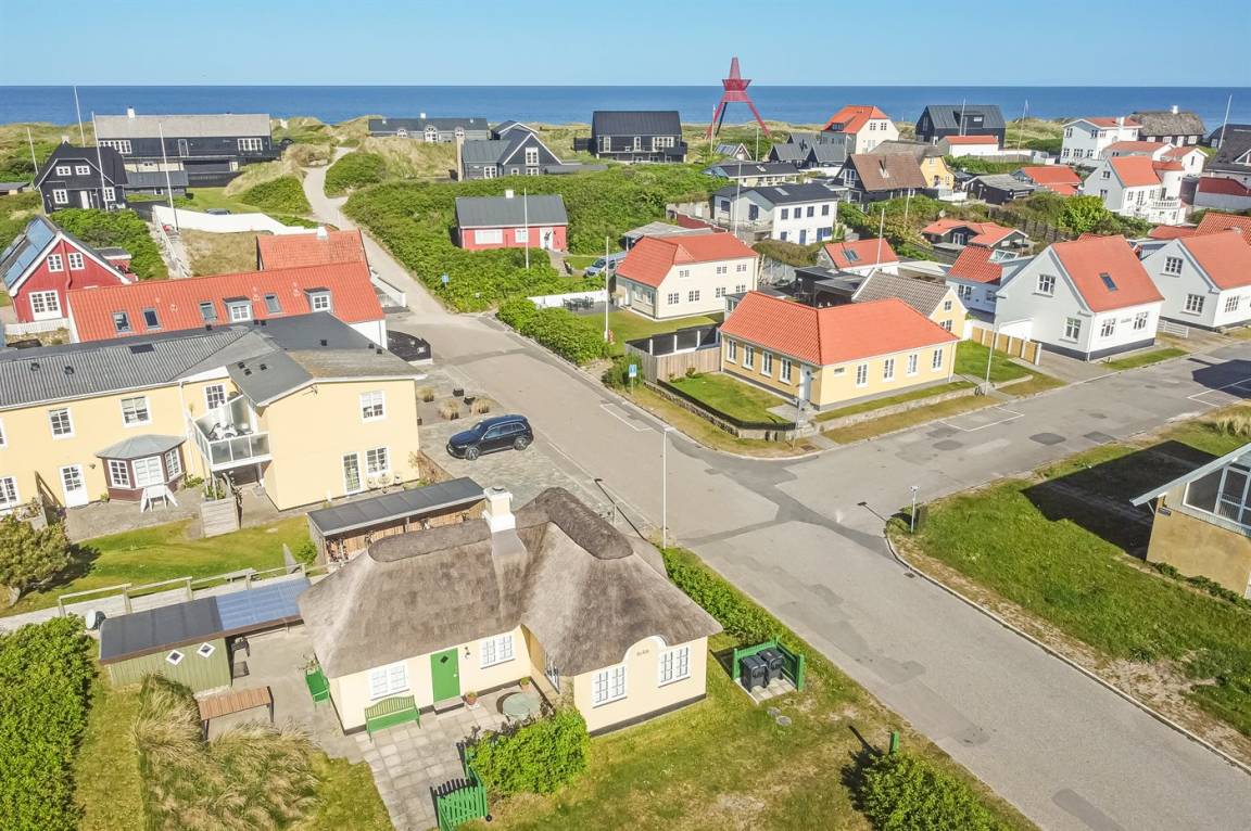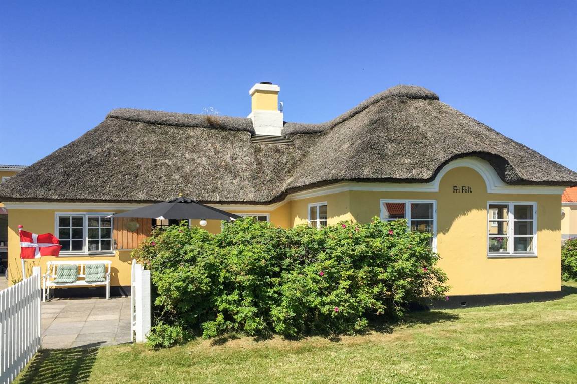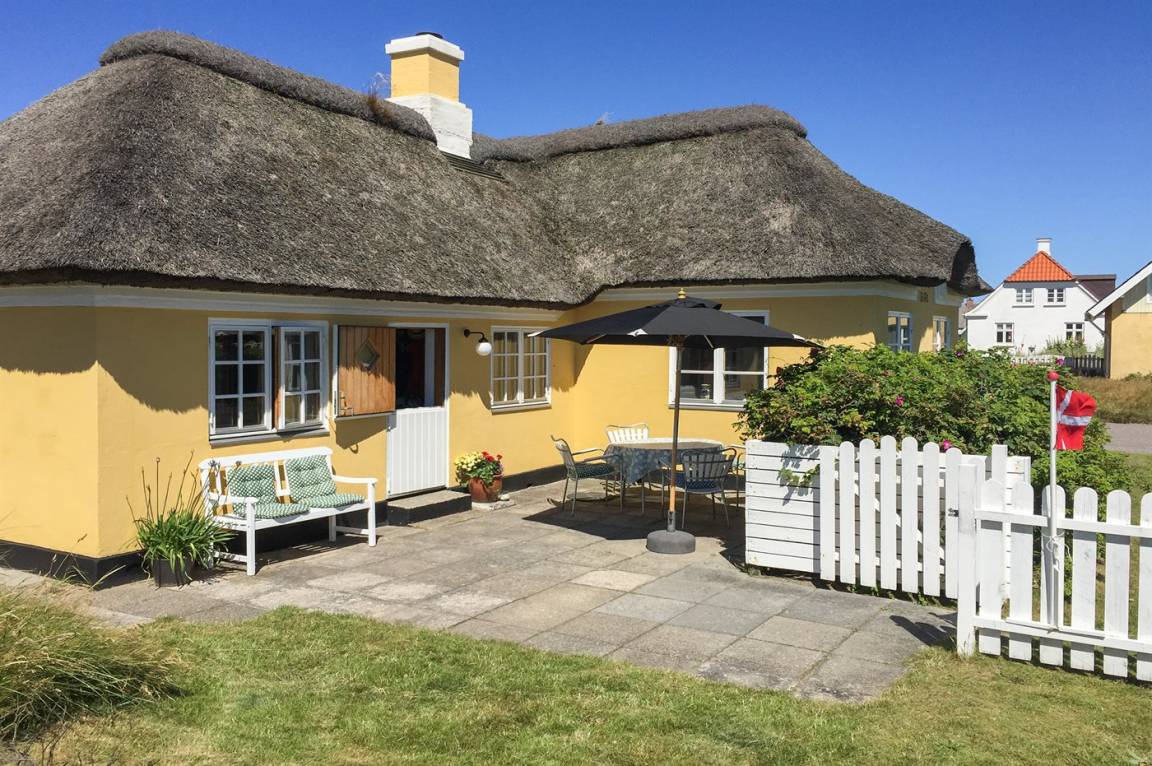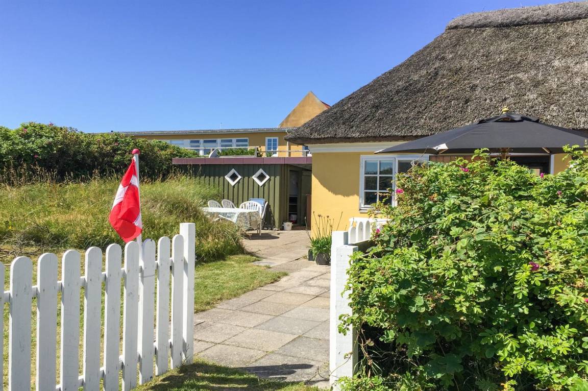 Ein besonders gemütlich eingerichtetes Ferienhaus mit Reetdach und Sprossenfenstern. Das Haus liegt dicht am Strand der Nordsee und nicht weit vom Zentrum des Ferienorts entfernt. Zum Haus gehören mehrere sonnenreiche und vor dem Wind geschützte Terrassen.