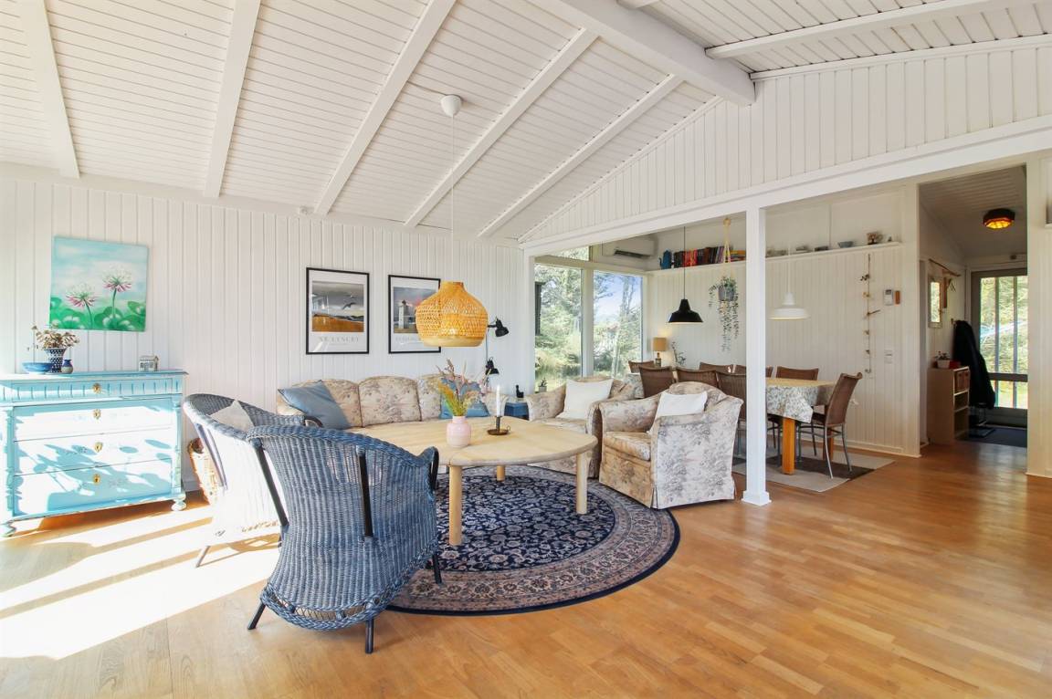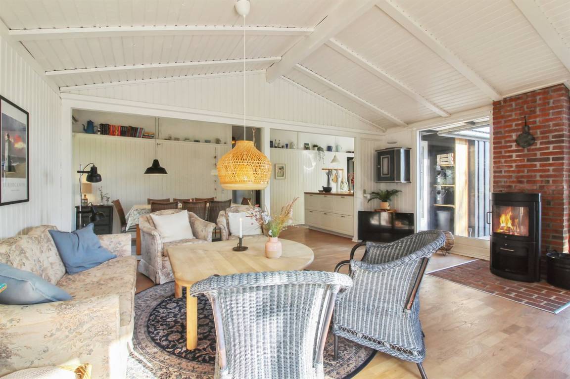 Das Haus ist gemütlich eingerichtet und strahlt echte Sommerhausstimmung aus. Hier kannst du am Esstisch mitgebrachte Spiele spielen, während es sich andere auf der Couch, vor dem Kamin, mit einem guten Buch gemütlich machen.