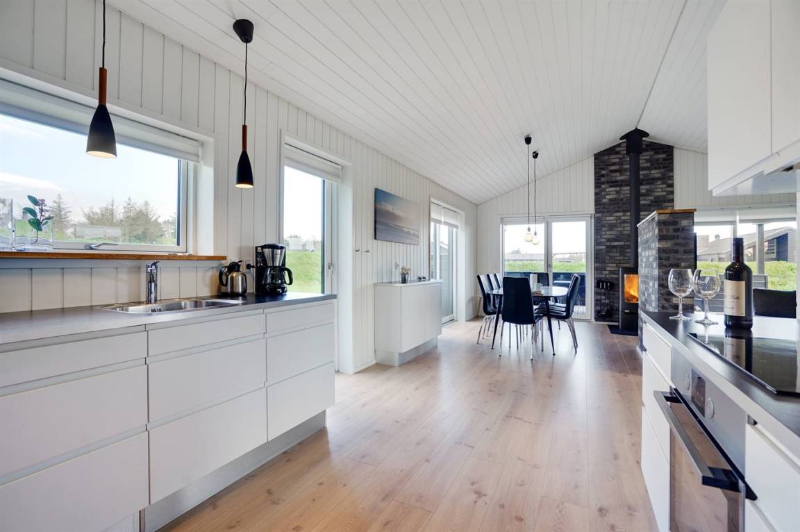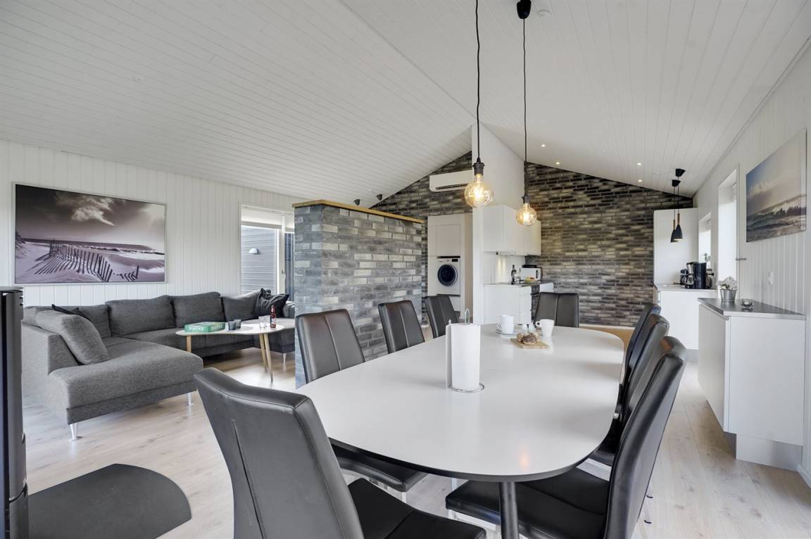 EinrichtungDas Ferienhaus eignet sich für 8 Personen sowie 1 Kleinkind bis zu 3 Jahren. Die Ferienunterkunft hat eine Wohnfläche von 135 m² und wurde 2017 gebaut. Haustiere dürfen nicht mitgebracht werden. Die Ferienunterkunft ist mit energiesparender Wärmepumpe ausgestattet. Die Ferienunterkunft ist mit Waschmaschine ausgestattet. Wäschetrockner. Tiefkühlmöglichkeit mit 60 Liter Nutzinhalt. Es gibt außerdem einen Kaminofen. Für die jüngsten Feriengäste ist 1 Kinderhochstuhl vorhanden.